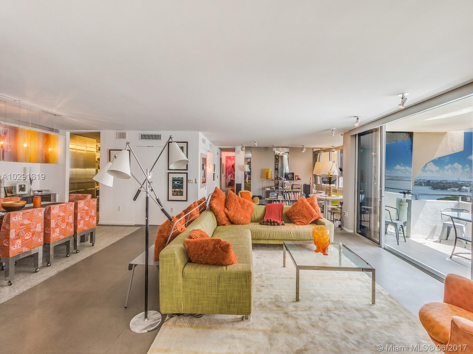 Featured in Oprah's o home magazine and Objekt International, by renowned architect Rene Gonzalez, this is an extremely rare opportunity to own one of the largest units on Belle Isle. With 2551 sq ft, two balconies, 2 bedroom 2 bathsroom + den that easily converts to 3rd bedroom, and the ultimated kitchen. This Venetian Island gem has all amenities: 2 parking spaces, concierge, gym and amazing restaurant overseeing the bay and pool area. Great bay views, perfect home to entertainment.