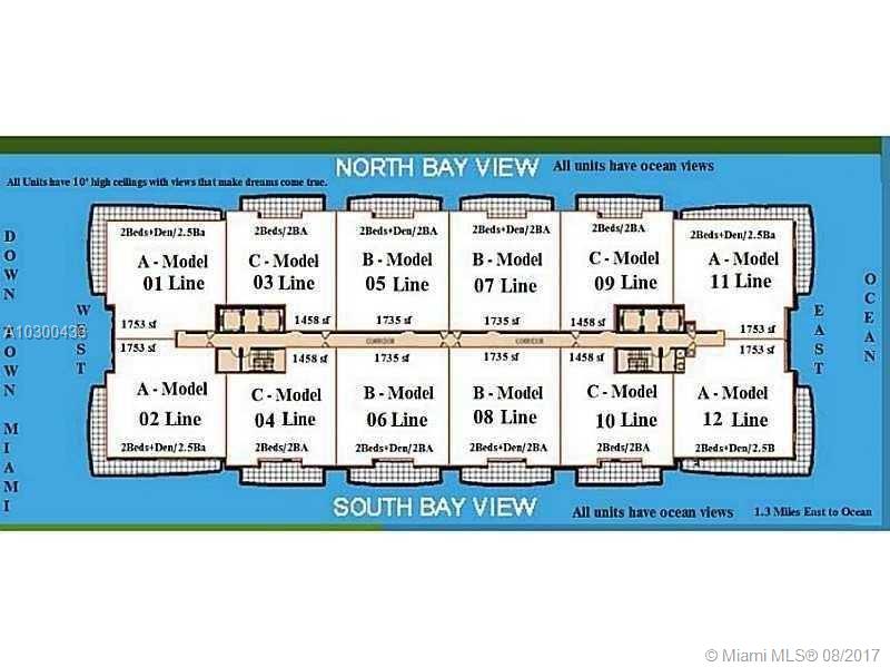High floor south facing corner, stunning 270 degrees views of Biscayne Bay, Miami Beach and Downtown Miami. This 2 Bed, 2.5 bath can be a full 3/3. Great finishes and lots of closets.