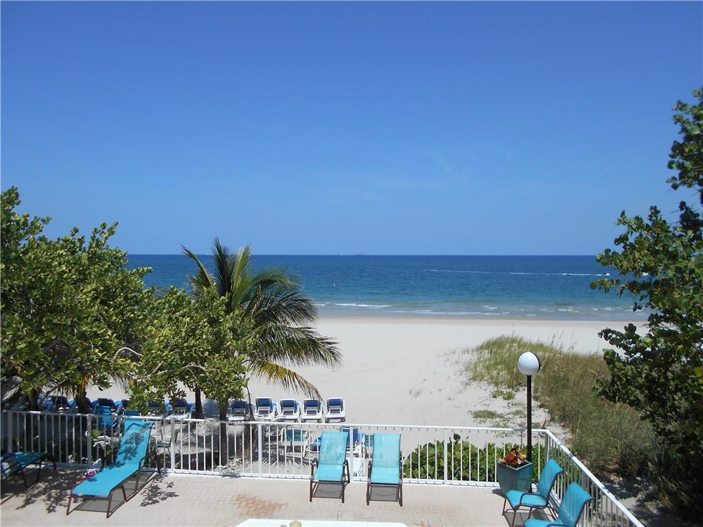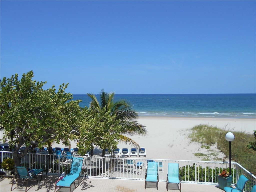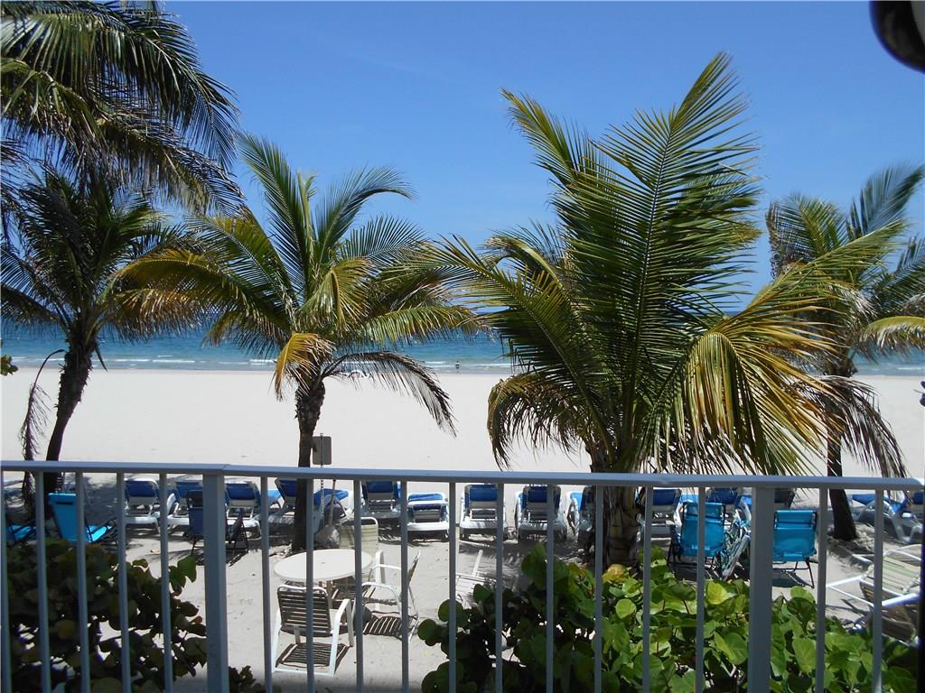 Over sized 2/2 with balcony in building right on the sand. Light and bright, great ocean, city and Intracoastal views. Impact glass windows, accordion shutters on balcony. Like-new stainless appliances. Master bedroom has 2 walk-in closets plus a large linen closet. Guest bedroom is large enough to fit 2 double beds plus furniture. Formal dining room plus breakfast area. Utility room with washer/dryer in unit. 24/7 security guard, fitness center, pool, spa, BBQ, party room. Furniture stays.