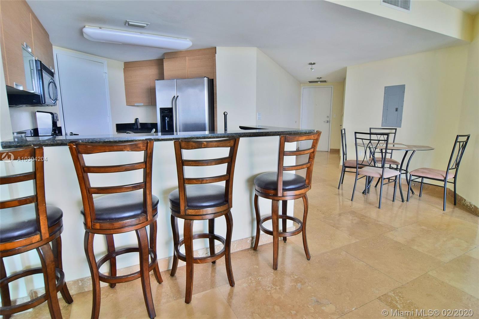 Largest and best line in the building, a 2B/ 2.5 baths with a million dollar view and an oversize balcony with marble floor. Experience breathtaking views of sunrises, sunsets and yachts pass by from any of the rooms. The unit has laminate in the bedrooms and 24"X24" marble tiles in the living room, kitchen and bathrooms. It features an open kitchen and top of the line appliances. The building offers clubhouse, pool, jacuzzi, bbq area, gym, 24hr concierge, guest parking, high speed internet and cable. The building is 5 minutes from the beach and 10 fm Downtown. Walking distance to supermarkets, restaurants, pharmacy, post office and more. Virtual showing only, available on the link https://youtu.be/MnrhtRMAqjQ