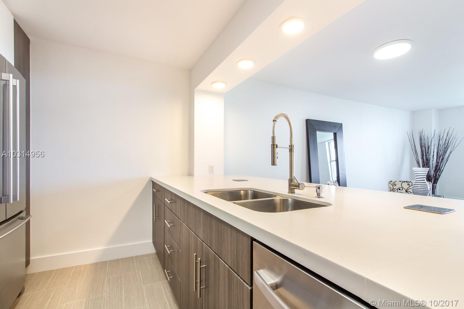 Meticulous renovation. Outstanding views of Biscayne Bay, abundance of light through new impact windows/ balcony doors. New designer custom kitchen cabinets and quartz countertops flow through the open concept kitchen. 3D metallic glass subway tile backsplash gives a backdrop to new high end hood, counter depth fridge, convection cooktop, sleek matching under counter microwave/built-in oven. As you walk through the large 1480 square foot home, your eyes gravitate to the sleek and rare reclaimed vein cut marble. As in the modern Kitchen, the bathrooms have been transformed with the matching custom designer vanities, quartz countertops, sleek tiles, and modern shower enclosures. Top it all off with new Home Automation, AC, new tankless water heater, new electrical, new fixtures and plumbing