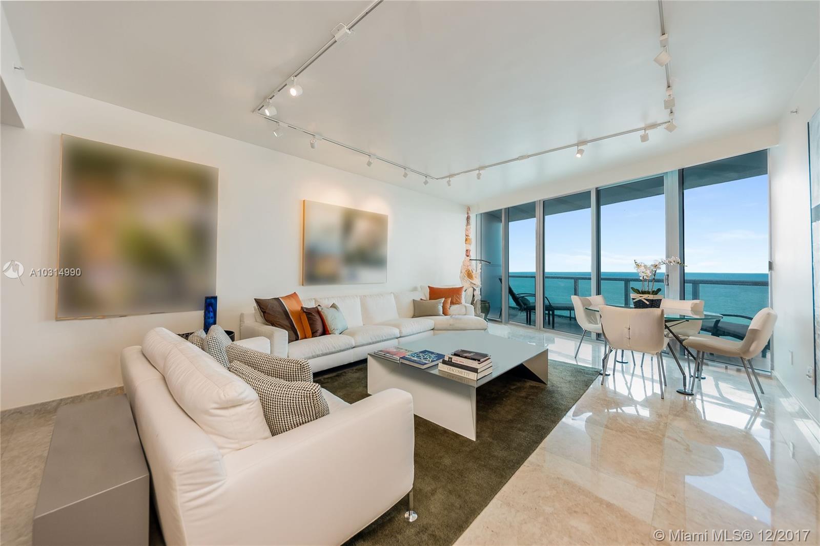 Welcome Home! Breathtaking ocean and city views with private balconies with floor-through layout. This stunning 3bed 3.5bath unit features cream marble floors, Italian wenge doors, electrical window treatment, large walk-in closet along with plenty of extra storage/closet space. Located in the elegant Jade Beach building in Sunny Isles equipped with world class amenities (pool, hot tub, fitness room, spa, children's play area, valet and more!) and friendly, helpful staff. Make your south Florida living dream a reality and enjoy the spectacular sunrises and sunsets on first row from one of your private balconies! One parking spot included and pet friendly building. Also available for rent starting 1/1/18 for $7,000 monthly.