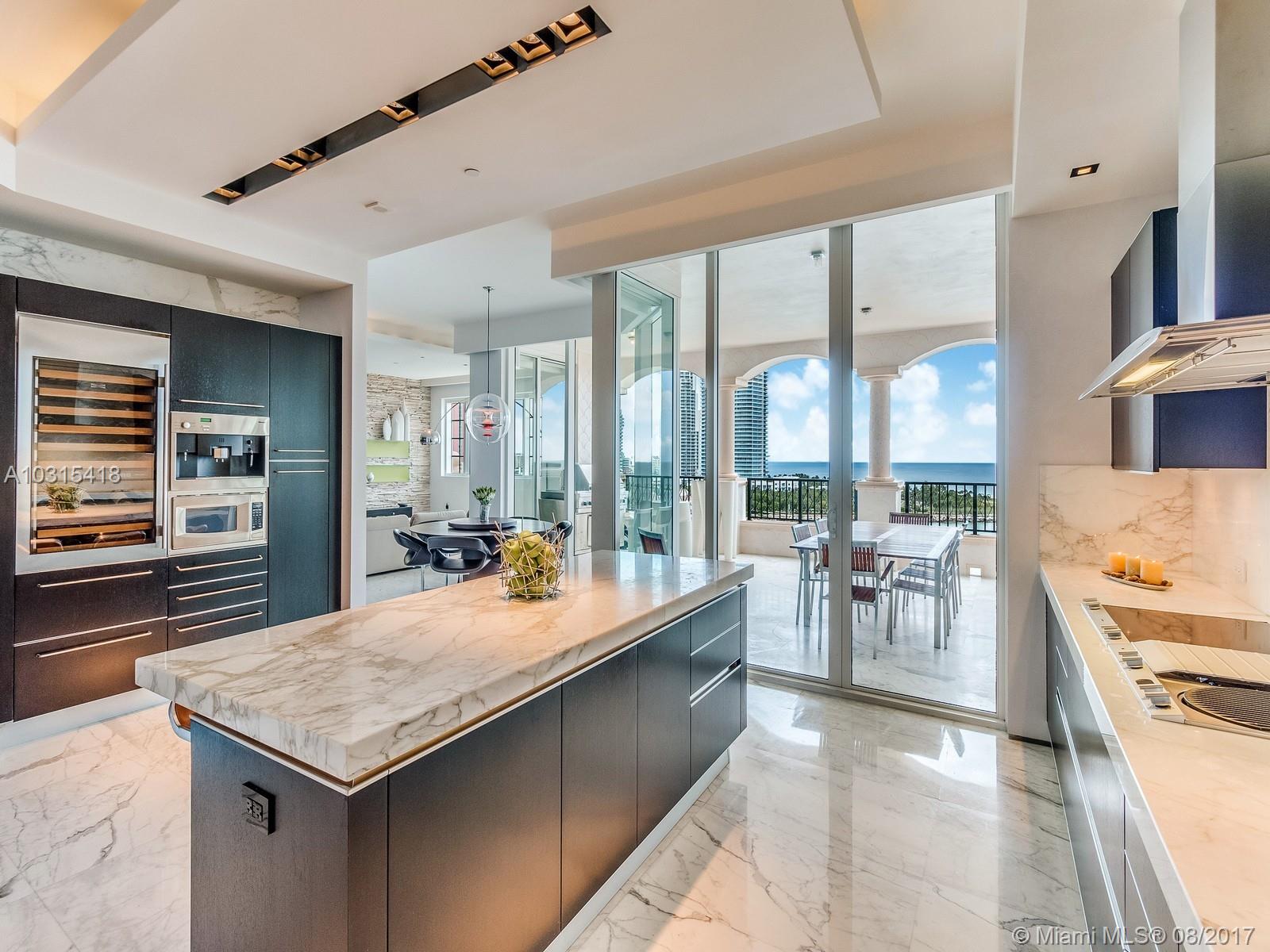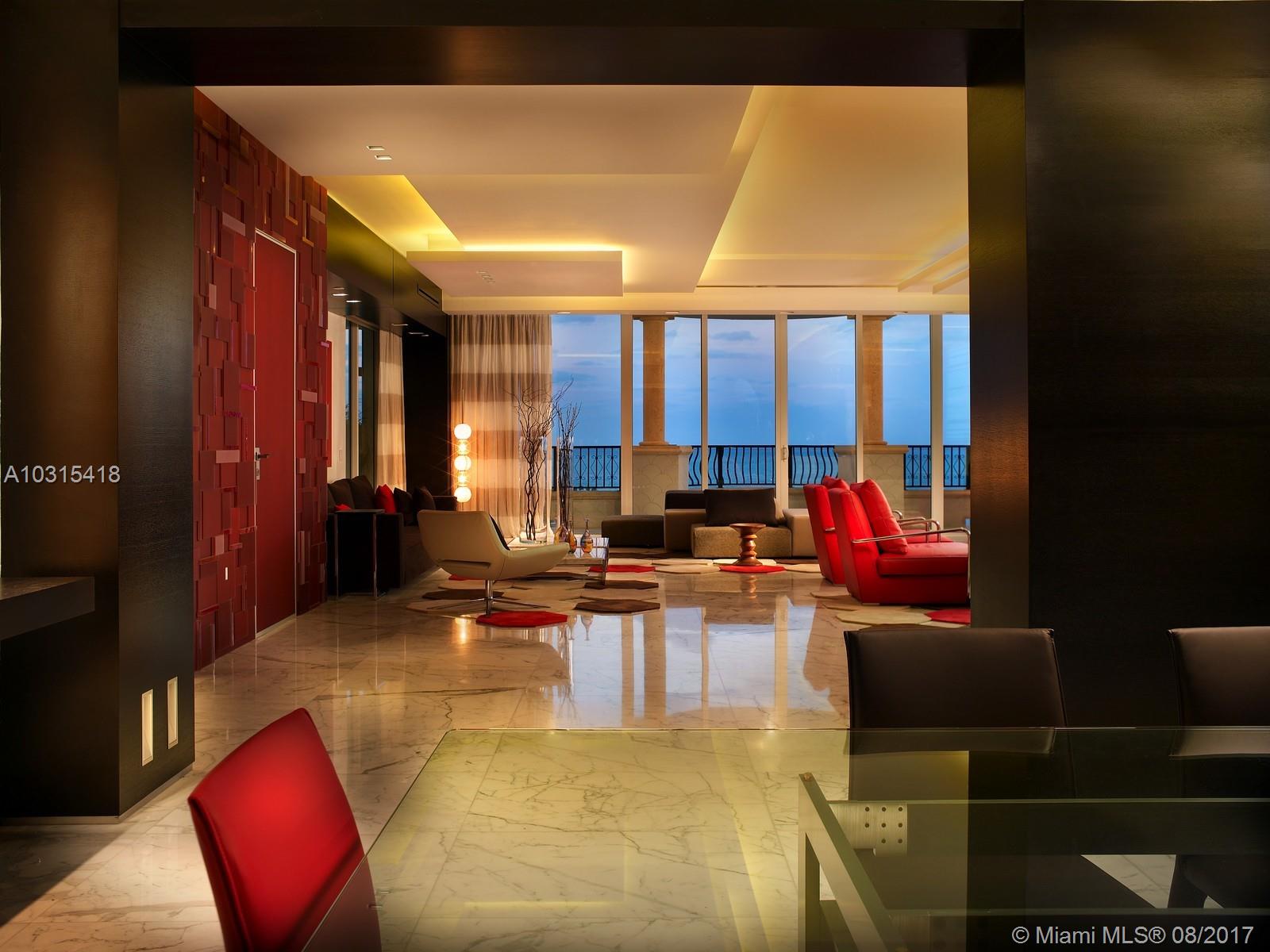 The ONE unit that has it all. Contemporary custom designed lower PH in Palazzo Del Mare by renowned designer Pepe Calderin boasts dramatic double door foyer, water fall entry feature & top of the line finishes throughout. Offered fully furnished “As Is” w/ rich Italian leather modern décor & wood/glass tables. Rare six (6) BR sprawling unit claims sweeping unobstructed views of Gov’t Cut, South Beach & the Atlantic Ocean from the moment one enters, this property is ideal for family living & entertaining. The sophisticated Master Spa Bath offers the ultimate luxurious experience w/ its oversized infinity whirlpool tub as the focal point & separate glass shower w/ deep ocean-blue glass tiles. Modern gourmet Kitchen w/ Miele appliances is wrapped in ‘’Calacatta’’ marble.