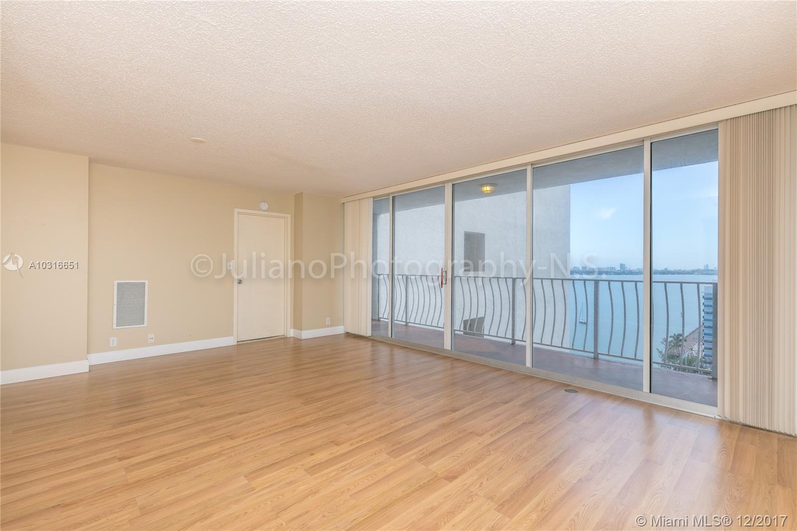 Fully remodeled two bedroom located in the heart of North Bay Village. Enjoy scenic views of Biscayne Bay and Treasure Island from its spacious terrace, accessible from all living spaces. Wood flooring throughout living areas, with carpeted bedrooms for softening comfort. Split level floor plan perfect for privacy and peace of mind. Kitchen and bathrooms have been modernly updated with beautiful quartzite tile. Building is full of amenities, including 24 hr security, an Olympic-sized swimming pool, Jacuzzi, on-site laundry facilities, stores, gym, hair salon, restaurants, marina and more!
