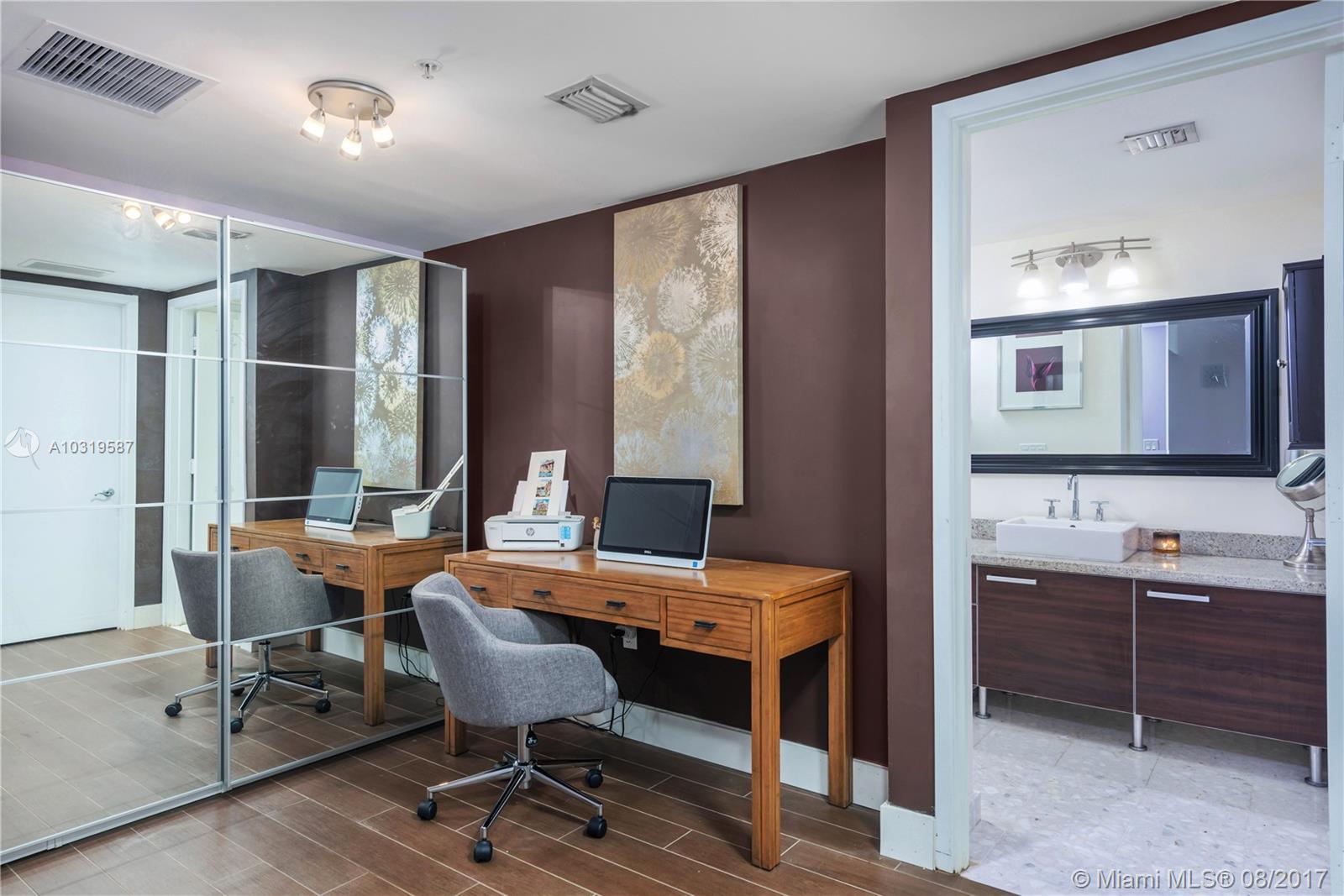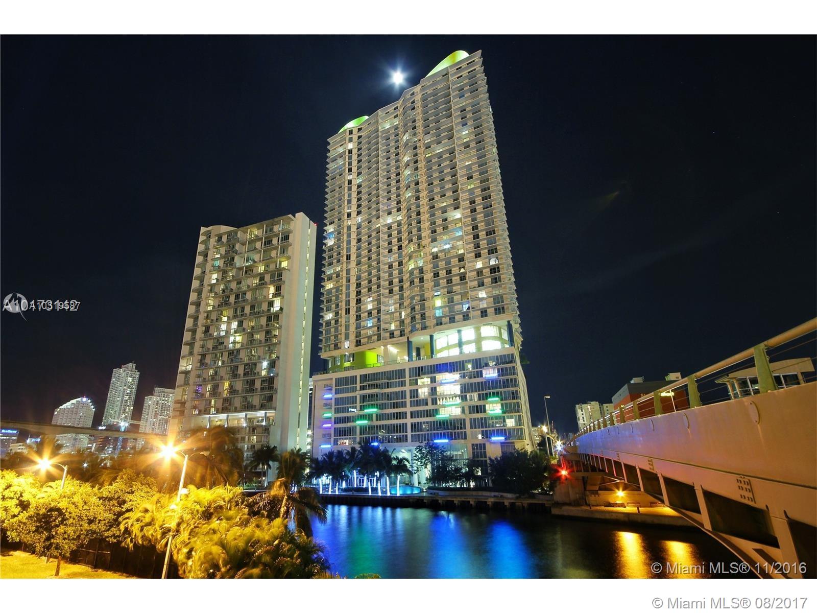 Oversized, updated 1 bed 1 bath + den at Latitude on the River, featuring 848 SF, upgraded flooring, custom cabinetry, stainless steel appliances, washer/dryer, private terrace, & sweeping ocean and city views. Located less than 2 blocks from Brickell CityCentre, with easy access to I-95, & across the street from the planned $1 billion Miami River project, the building features a heated pool, world-class spa, movie theater, multi-leveled gym, valet parking, & more. One of the top unit lines in the building with S/SE exposure. Cable, water, & internet all included in maintenance! Easy to show!