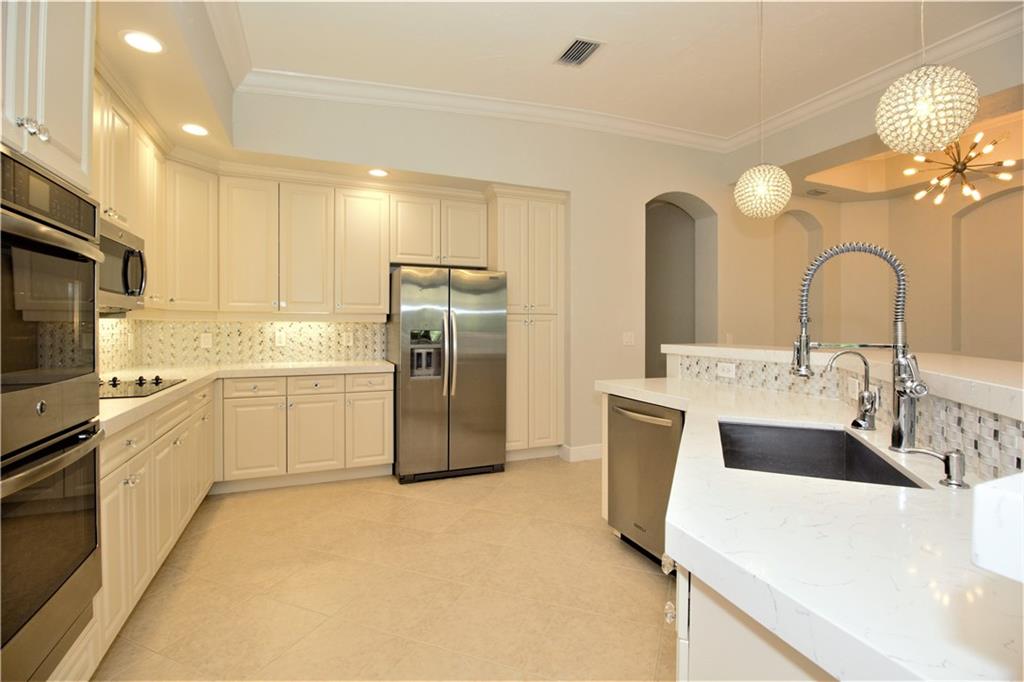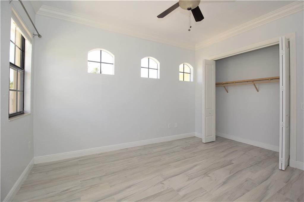 Upgraded, second level GOLF VIEW OPEN FLOOR PLAN COACH HOME W/ELEVATOR featuring 4 bedrooms/2 baths. (4th bedroom/office/den) Remodeled kitchen featuring SS Appliances, New Quartz Counter-tops, Under Counter Lighting, New Glass Tile Back-splash, New Sink w/ New Faucet and Crystal Cabinet Knobs. Tiled throughout the home and accented with Crown Molding. High ceilings, Screened Balcony, Clubhouse amenities and much more. This home is vacant and move in ready with a fast closing.