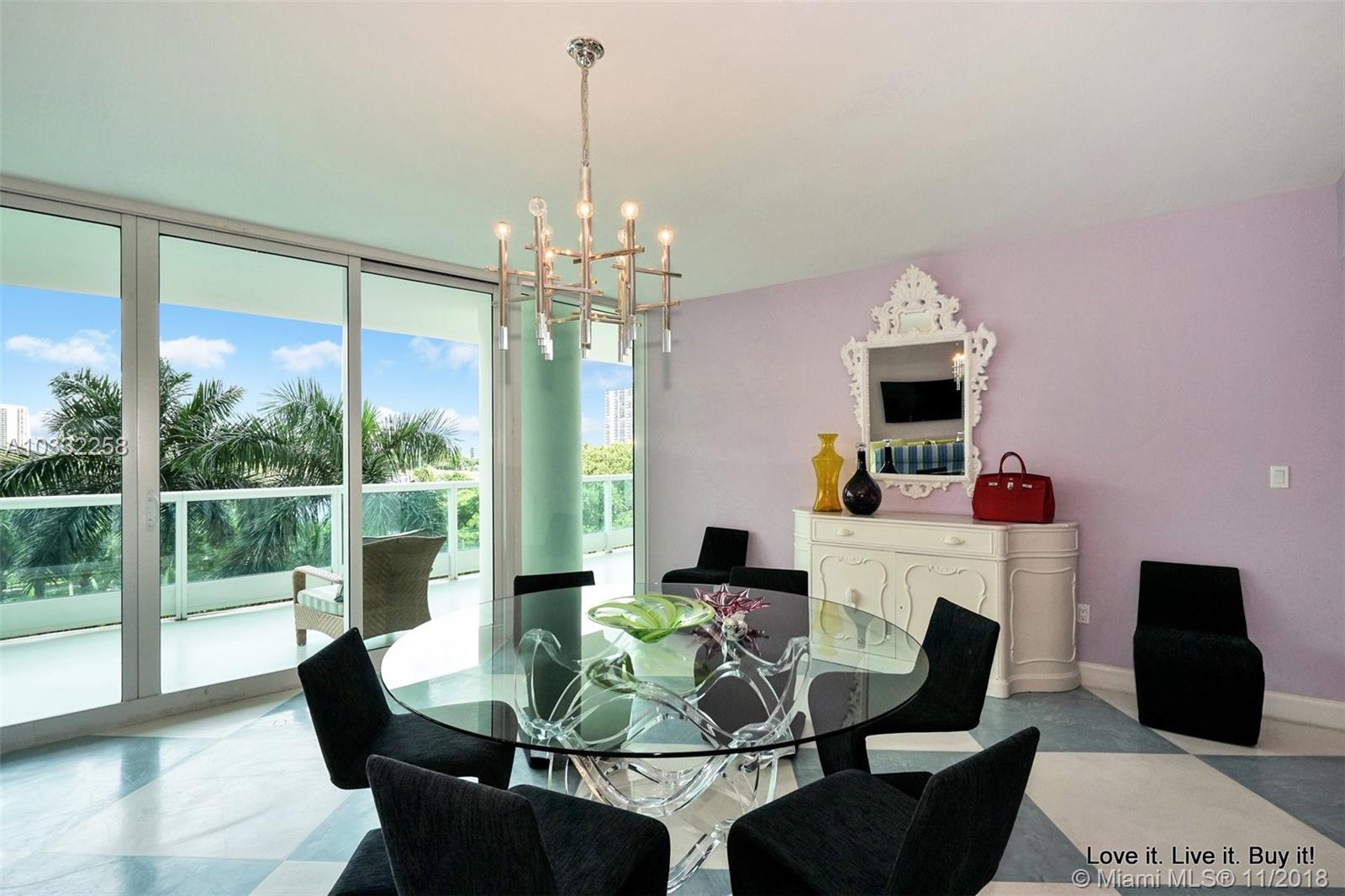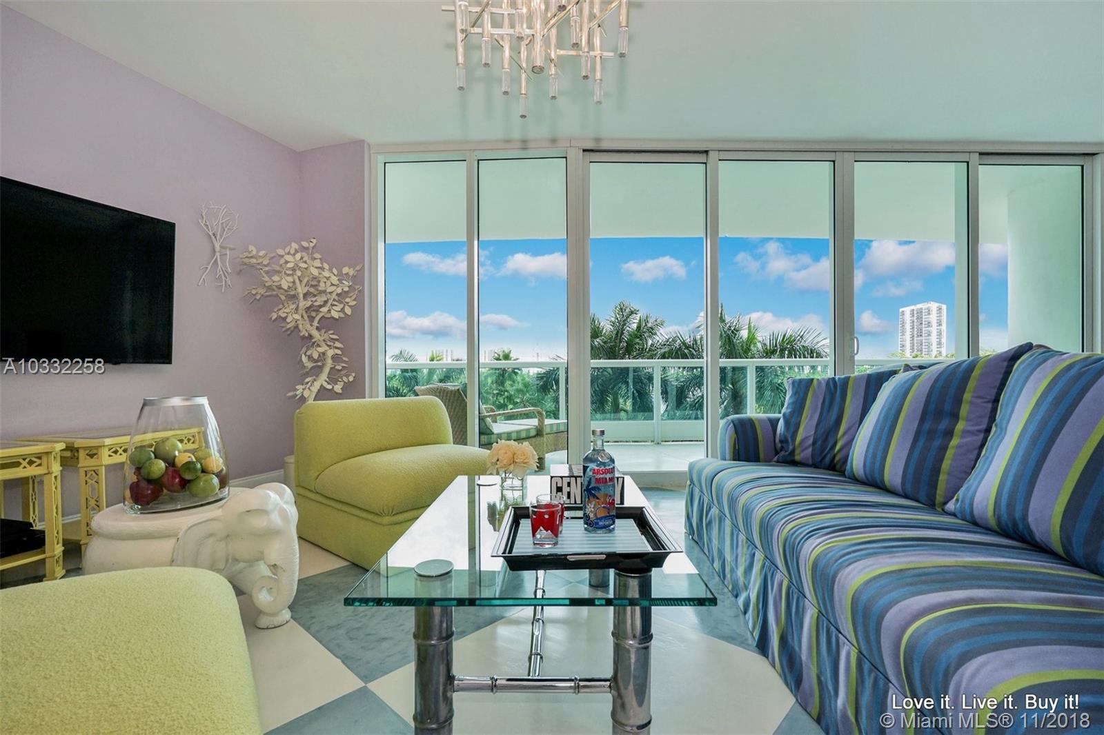 One of the happiest brightest apartments I have ever been in. Whimsical and fun, it's impossible to wake up grumpy in this unit. The views of the gardens, and Turnberry's golf course and lake are certainly charming and relaxing. This two bedroom was remodeled to offer a third room that can be used as an office or small child's room. Located on the 6th floor, easy to walk up and down from. On the fourth floor or mezzanine of the North Tower there is a small business cafe offering daily newspapers and T.V. The North Tower also offers it's own barbecue that will be turned on for you and cleaned up after you use it. There is an added dogie park so that your pet can mingle with other community pets. And of course, there is Porto Vita. The most luxurious neighborhood in Aventura!