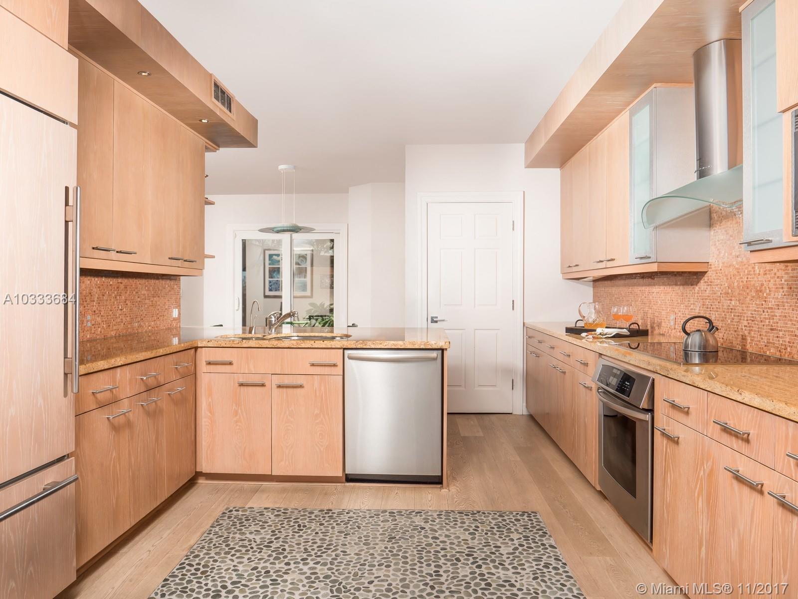 Prime location! Ground floor with sweeping guest Marina, Bay and city of Miami skyline views offers mesmerizing sunsets. Covered courtyard entry affords privacy and security. Huge wraparound terrace open to the garden and bay. Contemporary renovated 3 bed floor plan, gourmet kitchen with breakfast area opens to formal dining room. Beautiful Oak wood floors throughout living area. Custom wet bar with wood cabinetry and storage for fine crystal. Den boasts rich wood built-in/media center. Two powder rooms and staff quarters. Drastically reduced to sell!