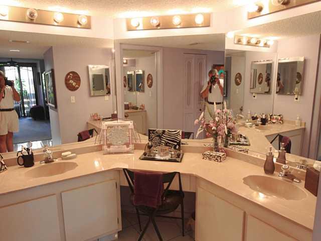 Spectacular! Shows like a model! Huge, secluded corner unit with 34' screened balcony overlooking wraparound water views. Exquisite attention to detail; this is one of the largest 2 bedroom condos in the area! Lovely tiled living space, huge master suit e, custom lighting & verticals, California closets, eat-in kitchen, full washer/dryer, built-ins & more! Gated community with pool. Fabulous location! Must see! (Exclude kitchen chandelier & decorative fireplace).