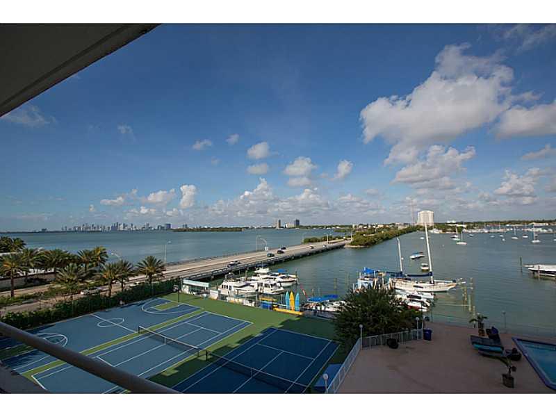 Amazing Downtown and wide bay, water views from the moment you open the door to this spacious and well appointed studio unit with a balcony! Building amenities include a HUGE, newly resurfaced, heated pool, marina, paddle board and kayak rentals newly res urfaced tennis courts & fishing dock. The unit is all tile w/ newer a/c, stove, toilet, and bath tub. Building is located on the charming Island of North Bay Village, which is it's own little wonderful city! Close to beach ,HWY, dinning and shopping!!