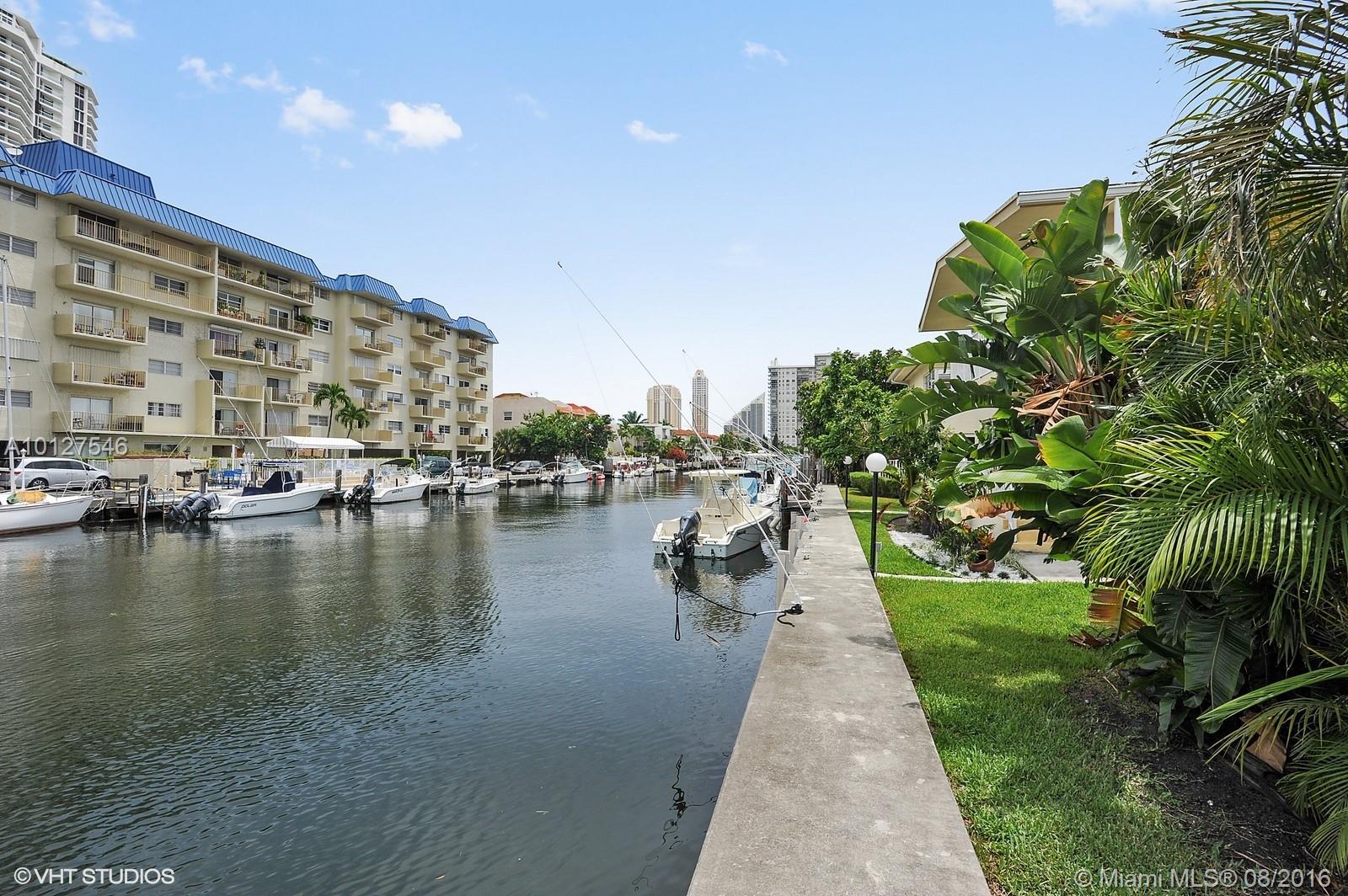 *DIRECT WATER VIEWS*BOATERS PARADISE* Like new! Fabulous 1/1 unit in sought after Eastern Shores has been renovated with designer features. Spacious, sundrenched garden style fourplex features open floor, high vaulted ceiling, central a/c heat, w/d in unit, tankless hw,huge closets, granite countertops gorgeous hardwood floors. Impeccable condition. Enjoy the Eastern Shores lifestyle with private security, easy access to SOBE, airport, FIU and all this neighborhood offers. Easy to show