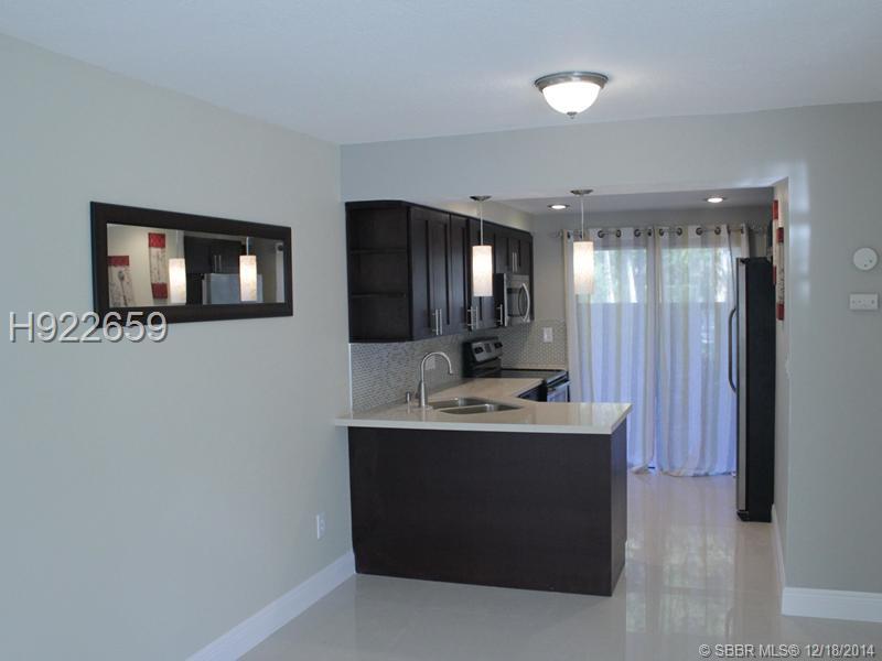 Absolutely gorgeous remodeled 2/1.5 condo; nice back patio/front porch. High end remodeling of kitchen w/ dark chocolate cabinets, tray ceiling w/ recess lighting in tray, pendant lights on the quartz counter tops, backed with glass back splash and lazy s usan. Brush nickel light trims to compliment with stainless steel appliances. Window treatments/ Lots of natural light new porcelain 24X24 tile throughout. Upgraded bathrooms with new floors, tub, vanities with granite counter tops/ splash glass tiles etc