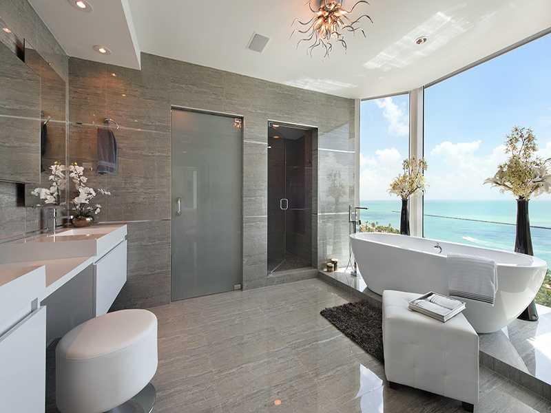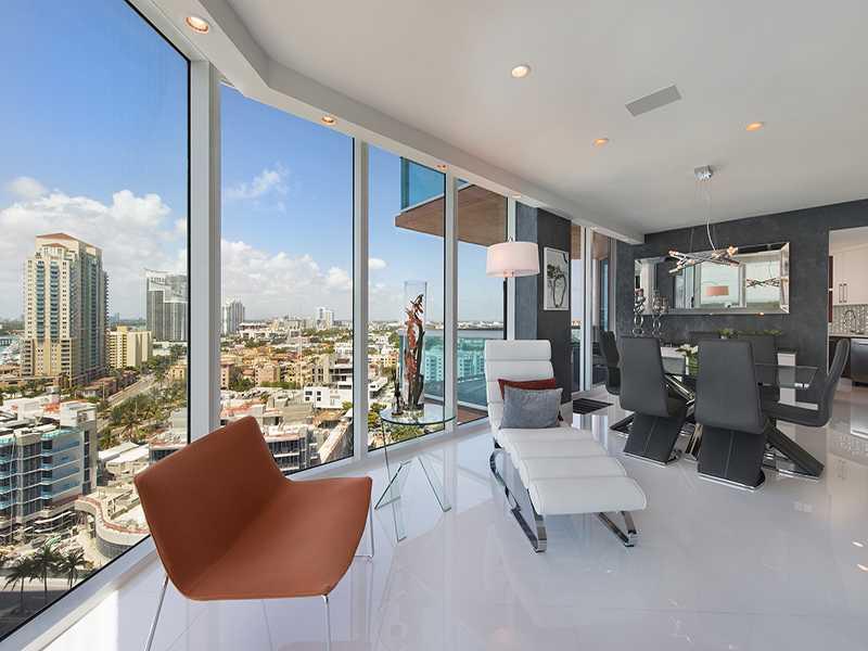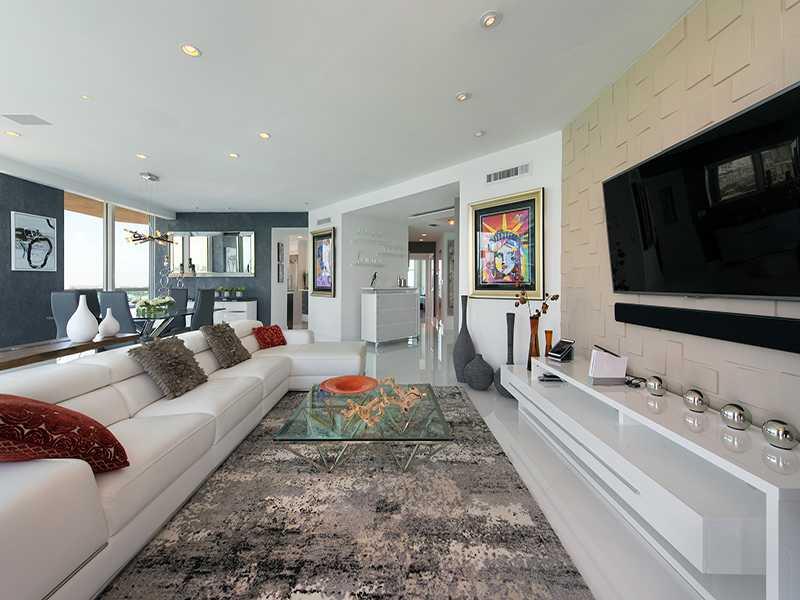Wow-What a showpiece! This stunning 3 bedroom has been beautifully designed and renovated to perfection, every inch of it. Large glass tiles, wonderful wall treatments, great fixtures and lighting, new doors, custom closets, electric window treatments, smart home iPad control, sound system. The kitchen and baths are gorgeous. Incredible views of the Intracoastal, the city, the ocean and Miami Beach. Large Sunrise and Sunset Terraces. Two parking spots. Don't miss this opportunity!
