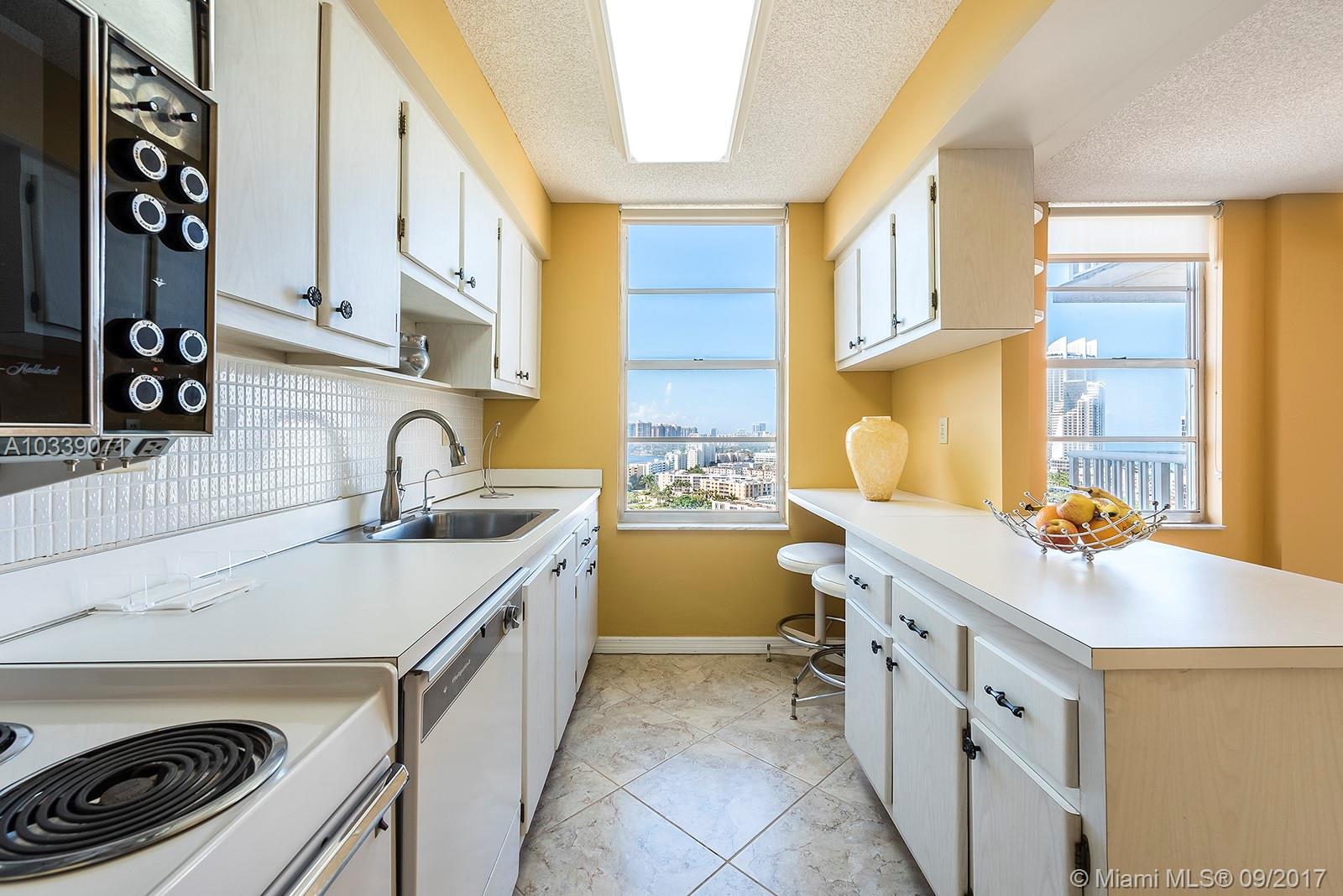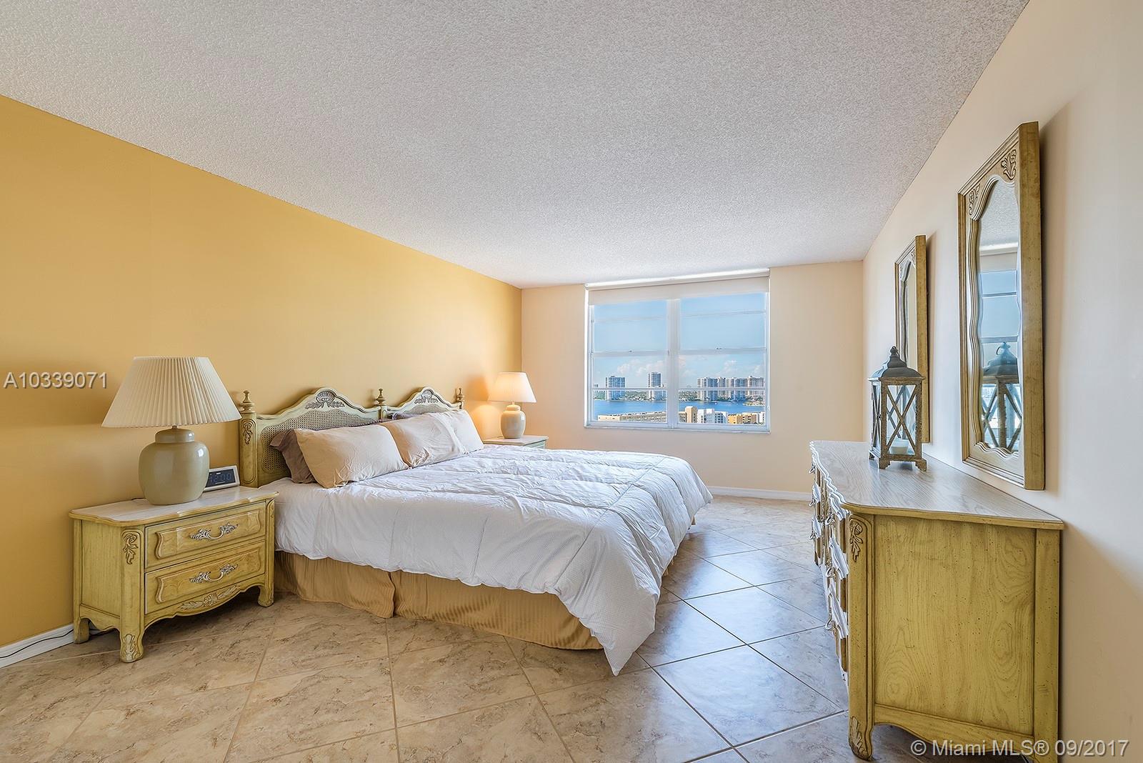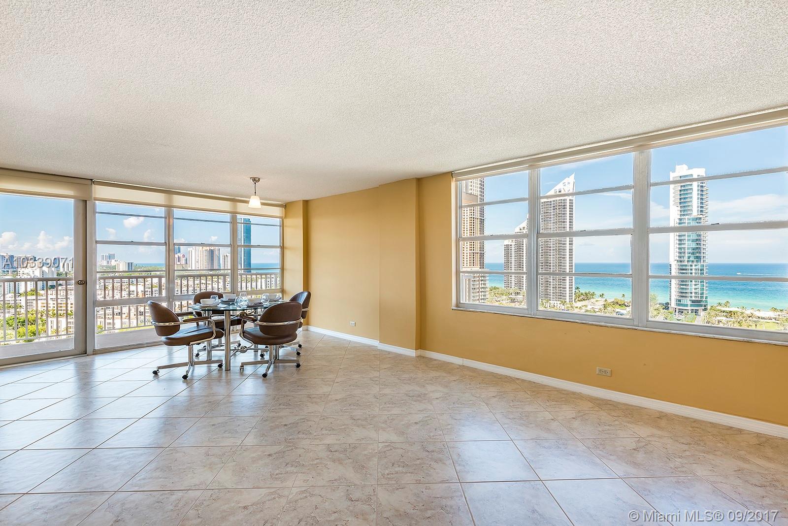 Sunny Isles is calling and what an amazing view from this super large 2 bedroom and 2 bathroom unit across the street from the ocean offers. Turn key, this unit has wonderful tile floors and is ready to move into immediately. The building is extremely well run and offers a pool, gym, library and billiard room. 40 year This truly is an exceptional building with low fee's and very well run. Sunny Isles is an amazing oceanfront community with exceptional school and lots of parks. No need for a car here if you just want to relax and enjoy a resort community. Taxes do not reflect Homestead