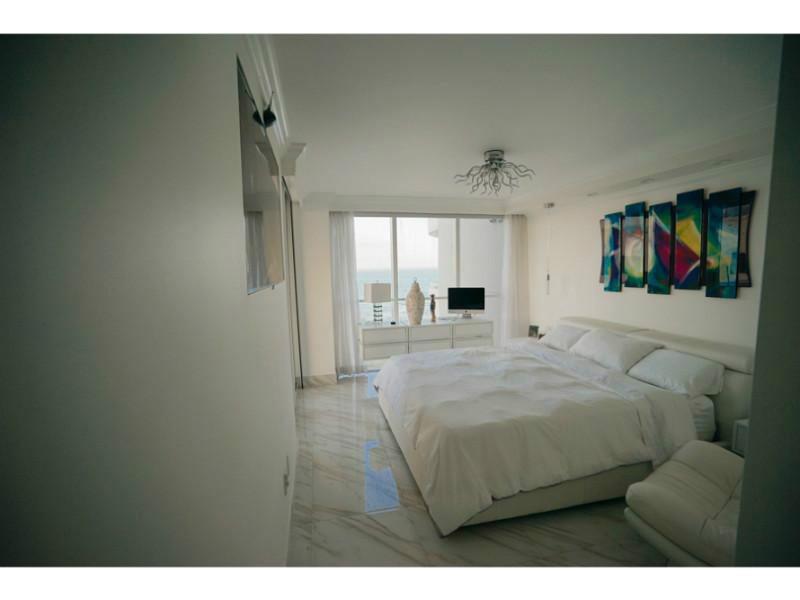 Luxury at La Gorce Palace on the 10th floor at it's finest. Stunning views of the beach, ocean, inter-coastal and city. Over 120k of upgrades! Tastefully designed w/open living space in mind, 9 ft ceilings, motorized shades thru out condo, wrap around 560 sqft balcony. Remodeled to perfection, freshly painted, gorgeous bathrooms, vaulted ceilings, custom fixtures, TV's in walls included, European kitchen cabinetry and stainless steel appliances. Two assigned parking spaces. Beach access & Pool. MUST SEE!
