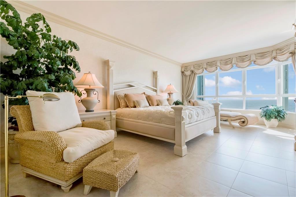 Enjoy stunning direct ocean, city and Intracoastal views from this 3BR/3BA/3200sf SE corner unit w/ 800sf wrap around terrace. Top of the line kitchen w/granite counter tops and wine cooler. 2 master suites with en-suite bath and huge walk-in closets. Floor to ceiling impact glass. Only 4 units per floor, semi private elevator. 2 garage parking spaces. Amenities: 24hr security, fitness center, pool, spa, sauna, tennis, billiards, party room with full kitchen & poolside grills. Pet friendly bldg.