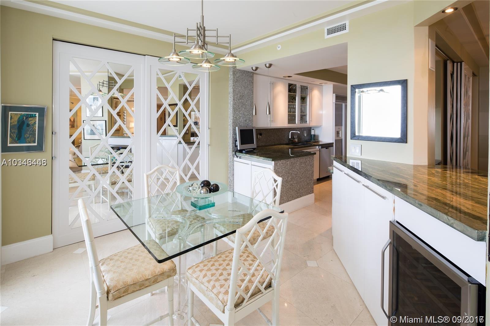 ONE OF A KIND. PRIVATE ELEVATOR LEADS DIRECTLY TO THIS CUSTOM 3BD, 2.5BA RESIDENCE. 2,630 SF OF LIVING SPACE + 2 BALCONIES & WATER VIEWS BOTH NE & SE IN THIS FLOW-THRU PLAN. UNIT HAS MARBLE FLOORS THRU-OUT, WOOD IN BEDRMS. HURRICANE SHUTTERS. UPDATES: OPENED KITCHEN WALL TO LIVING AREA, GRANITE COUNTERS, APPL INCL 5 BURNER INDUCTION RANGE, 2 RENOVATED BATHROOMS, HUNTER DOUGLAS BLINDS, CLOSET BUILT-INS, NEW A/C UNITS, ETC. 2 SPACES IN GARAGE, STORAGE, VALET, 24-HR SEC, TENNIS & RENOVATED SPA/FITNESS CENTER. 3 SWIMMING POOLS.