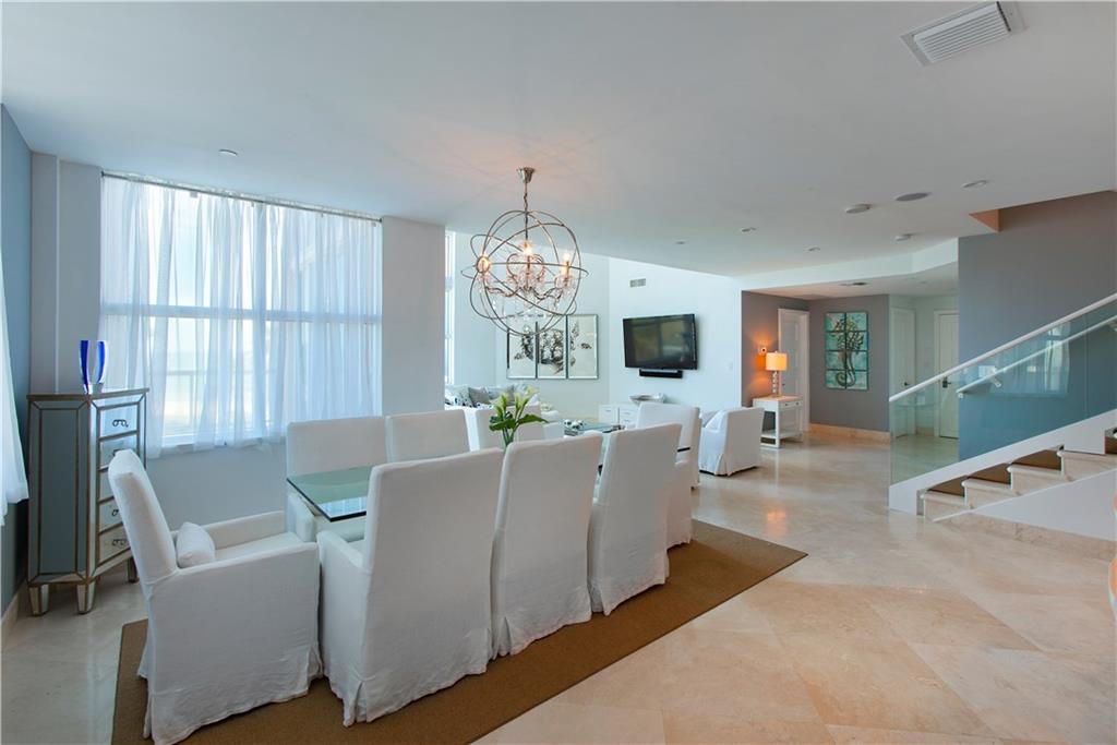 Rare opportunity to own the only 2 story open concept condo in The Palms. Recently meticulously and beautifully renovated floor to ceiling windows including an added window in the master for even more spectacular views. Tastefully furnished by Miami Interior Designer Jeanie Johnsen. Attention to detail throughout, too many custom features to mention. Relax and enjoy all the amenities including state of the art gym w/squash, racquet ball, tennis, heated pool, chair and towel service at beach.. A MUST SEE!