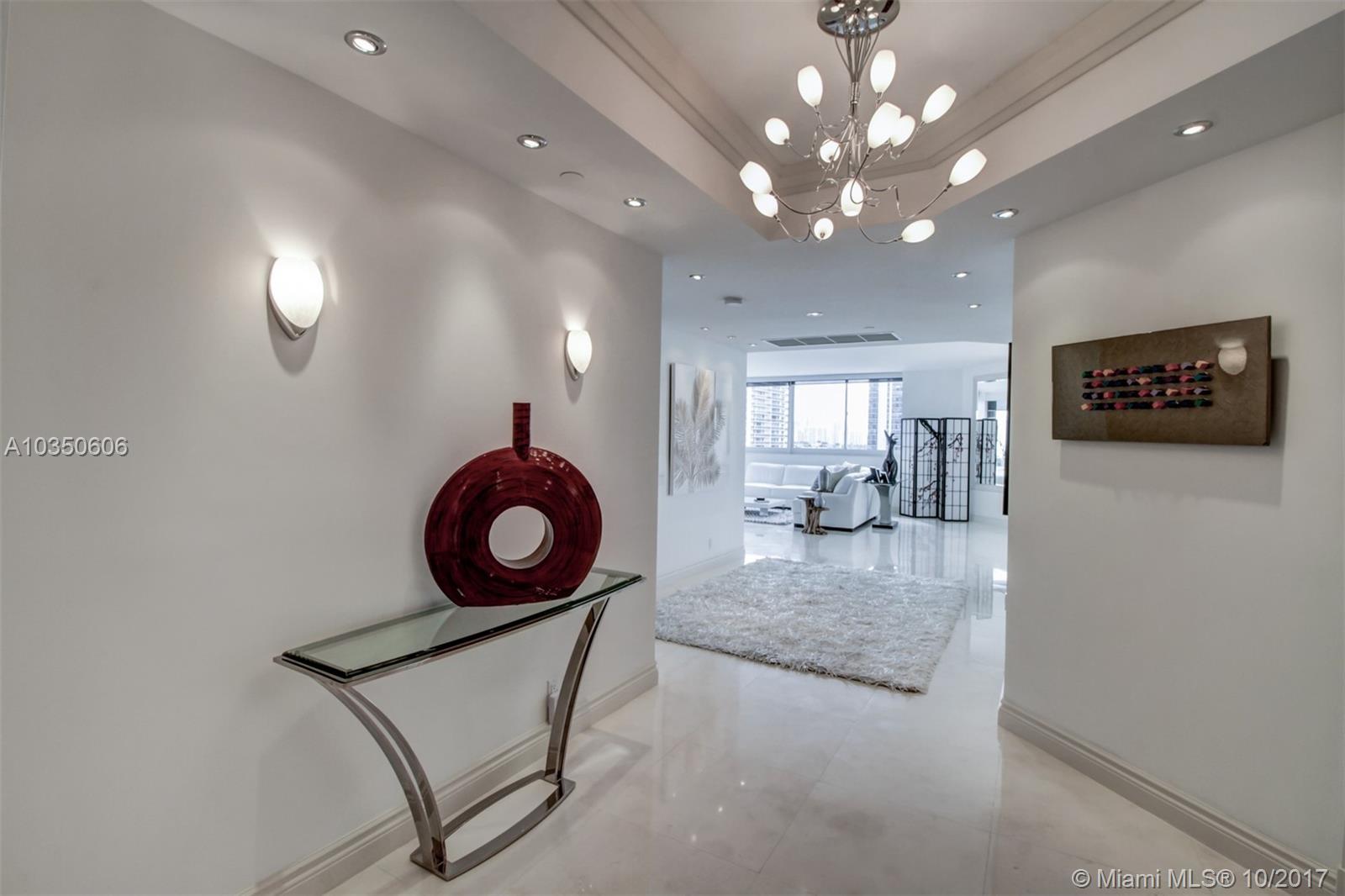 Mesmerizing views from this spacious 2/2.5 in the Exclusive One Island Place. Enjoy picturesque views from east to west, sunrise to sunset, in this bright and clean renovated to perfection unit. Property highlights include private elevator, foyer entry, limestone and marble flooring, split bedroom plan,large balconies, updated bathrooms, great closets, separate laundry room with utility sink, shutters & 2 parking spots. Complex offers full service, security, gym, 2 pools & tennis; all in A+ rated school district. Steps to shopping, marina & houses of worship. Furniture available for sale, can be sold turnkey.