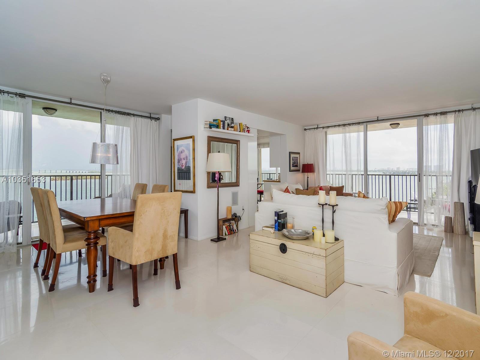 Breathtaking views & wonderful feeling corner apartment. Wrap around balcony at the perfect height. Gorgeous unobstructed views of both water and city. You will have beautiful sunrise, sunset and night lights. It’s a fantastic tastefully updated unit in a fantastic boutique type building. The location is A + …..great proximity to Miami Beach as well as Miami Main land museums and Opera. Foyer entrance, wonderful split plan layout, beautiful tile flooring, superb kitchen, 1/2 bath powder room & washer/dryer room. Hurricane shutters for protection. Advanced notice to see inside please. Plenty of parking.