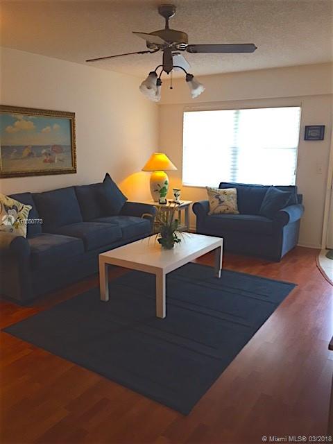2 BED, 1.5 BATH, SCREENED BALCONY Fully furnished,flat screen TVs are included. New AC being installed this Month!!Neutral colors that will fit any decor. Ceramic tile in kitchen & bathrooms, Cherry Wood Laminate thru out. WASHERS & DRYERS LOCATED on each floor across from the elevators. Resort style community for the active 55+. Clubhouse with Movie Theater, Indoor & Outdoor Pools, 2 Health Clubs, Tennis, Golf, Billiards, Card tables, Shuffleboard, Library & Monthly scheduled activities. Great Restaurant located at the Golf Club. Community offers transportation to nearby Pembroke Lakes Mall and shopping centers. SOLD AS-IS. ADDITIONAL STORAGE for this Condo ON 3RD FLOOR.
