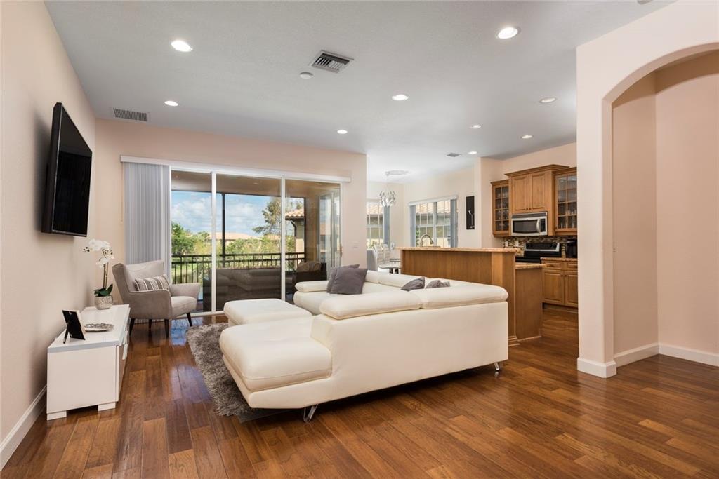 STOP THE CAR!! This is the condo you have been waiting for in Heron Bay! UPSTAIRS Corner added WINDOWS MAKE FOR A LIGHT & BRIGHT LIVING SPACE. Immaculate & wide open, ''4'' CAR DRIVEWAY Plus additional guest parking. GORGEOUS REAL WOOD FLOORING. Beautiful kitchen (W/built in wine cooler!!) & Upgraded Baths. Master has a HUGE Dual shower with bench & a Private Lav. Pretty Patio with the Longest Lake View. Pristine Garage with covered walk to 2nd floor entry. NO Condo application required for purchase.