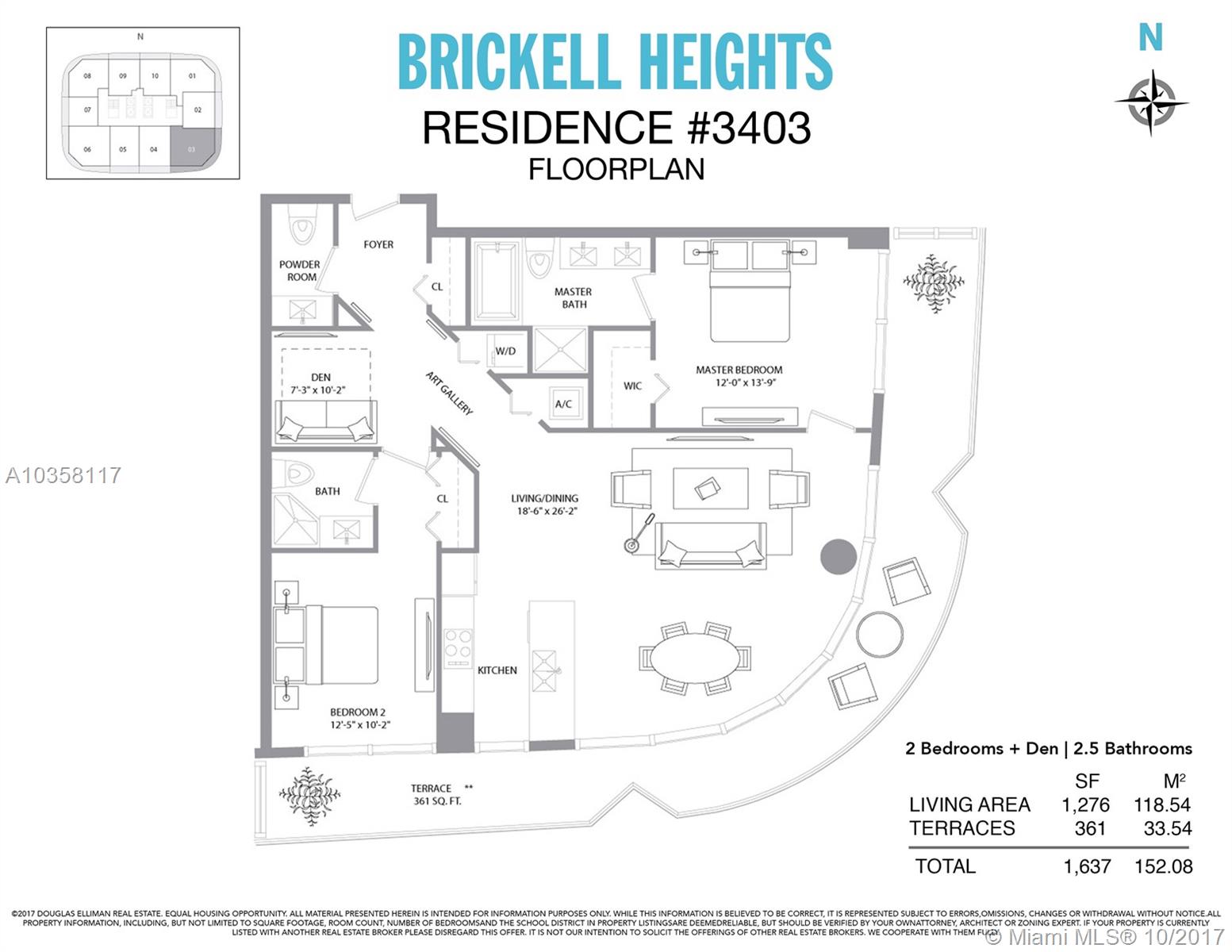 Brickell Heights is a brand new building in the heart of Brickell! Stunning city and bay views from the moment you walk into this 2 BR + Den residence in the highly desired 03 Line in the East Tower of Brickell Heights. This SE corner residence, with stunning water views, features a wrap-around terrace accessible from every room of the residence! Interior features include floor to ceiling windows, Italian cabinetry, imported designer porcelain tile floor, stainless steel appliances in the kitchen and European cabinetry and imported stone counter tops in the bathroom. Located just steps away from Brickell City Centre, with world class dining, shopping nightlife, and more. Luxury building amenities include an Equinox gym, Soul Cycle studio, rooftop pools on top each tower and much more!