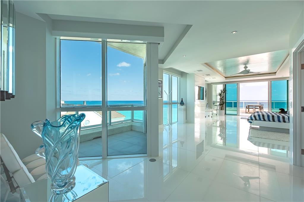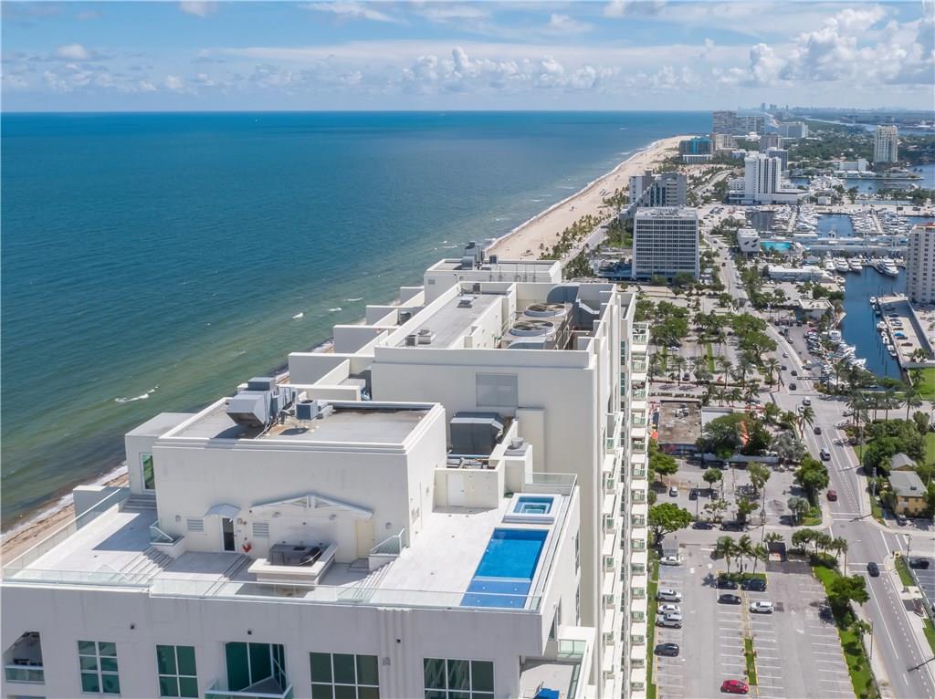 Direct Oceanfront! Imagine the combination of extraordinary Modern architecture with a privately deeded rooftop pool, spa, summer kitchen, bar & terrace capturing the ultimate ocean, city & intracoastal views! Private elevator access to your own roof top retreat.Custom floorplan: expansive open entertaining areas, chefs kitchen, private bedroom suites & entire Master Wing with over 2,000 sf of balconies & views from most rooms. Professional interior designer finishes. Resort quality full amenity building.
