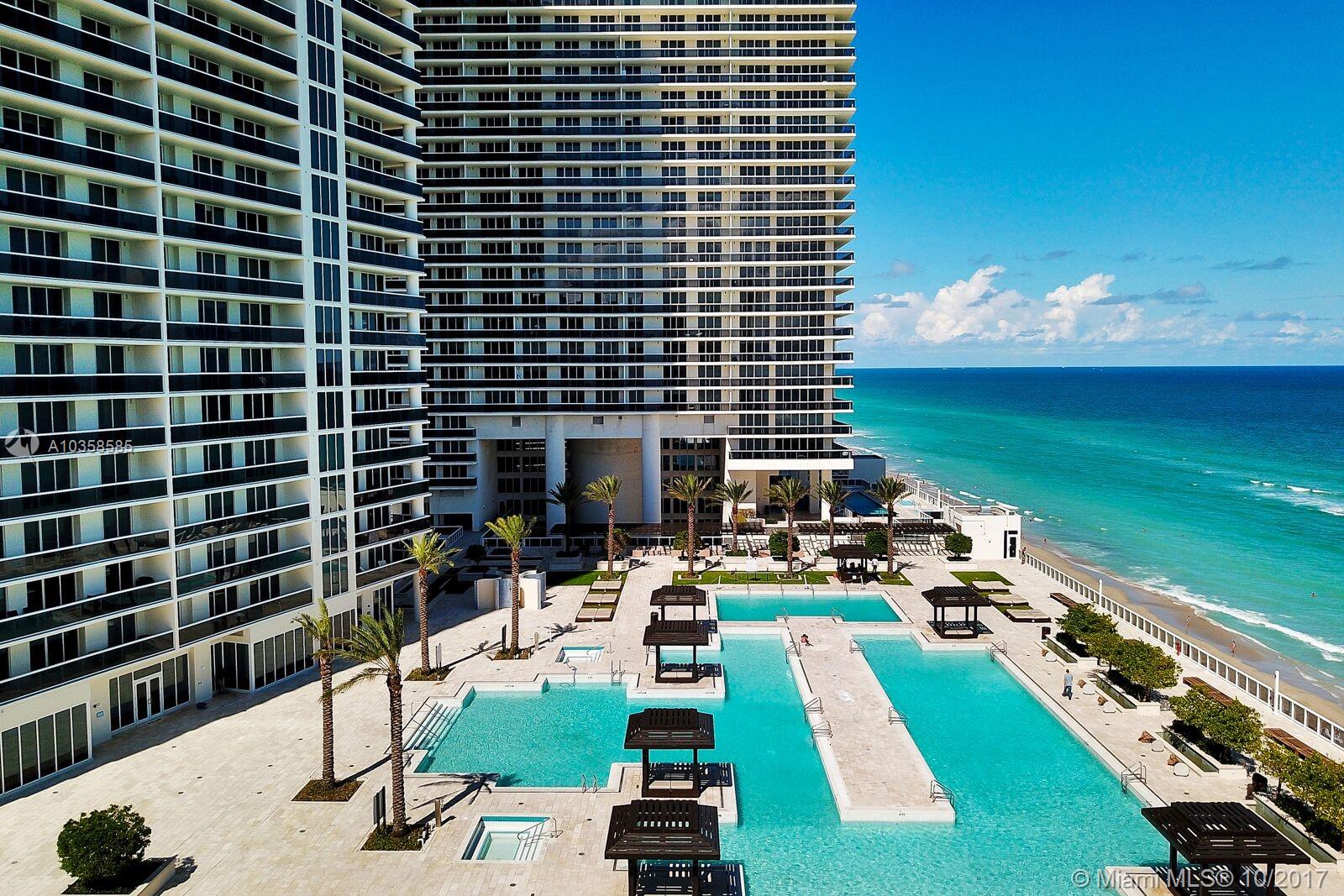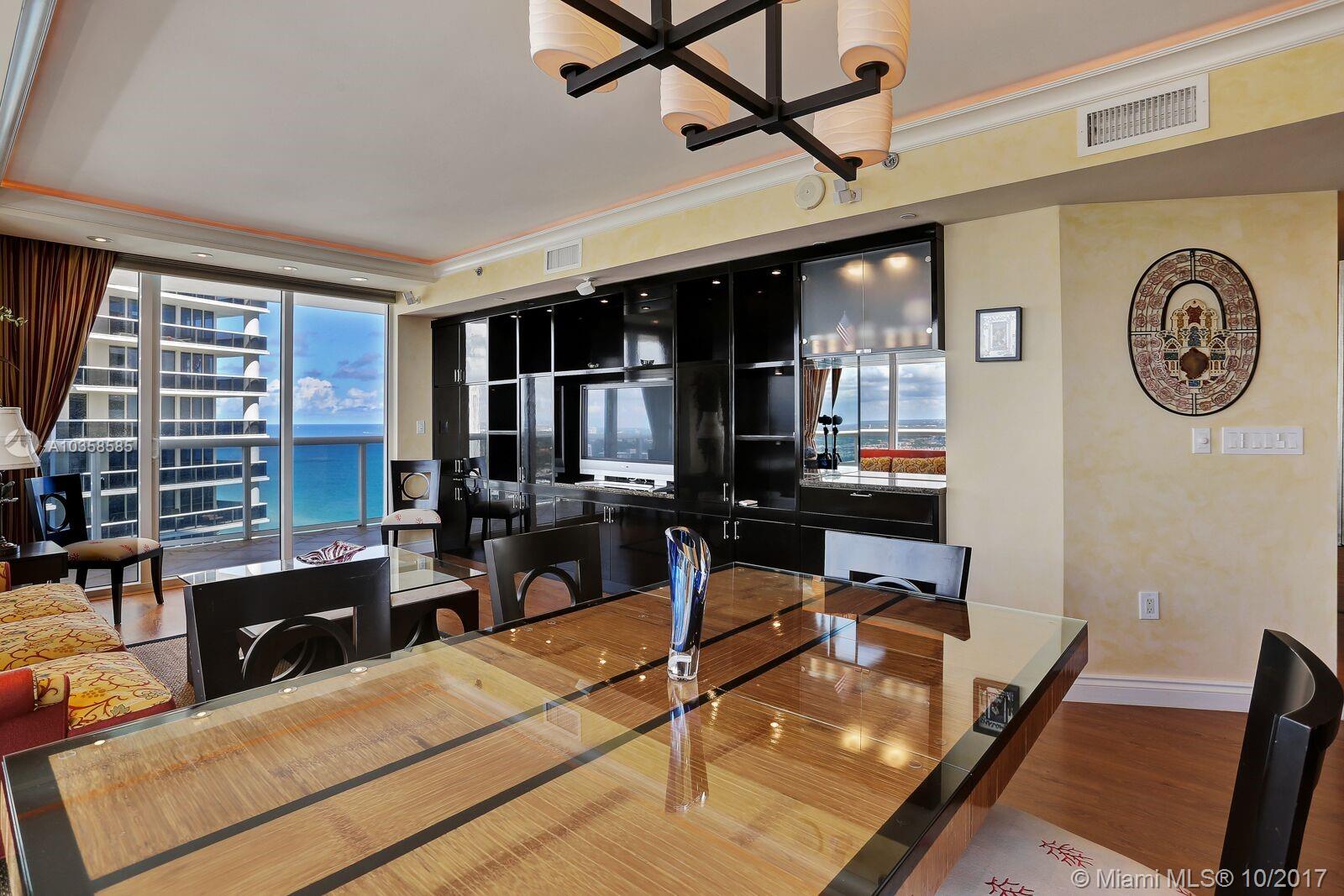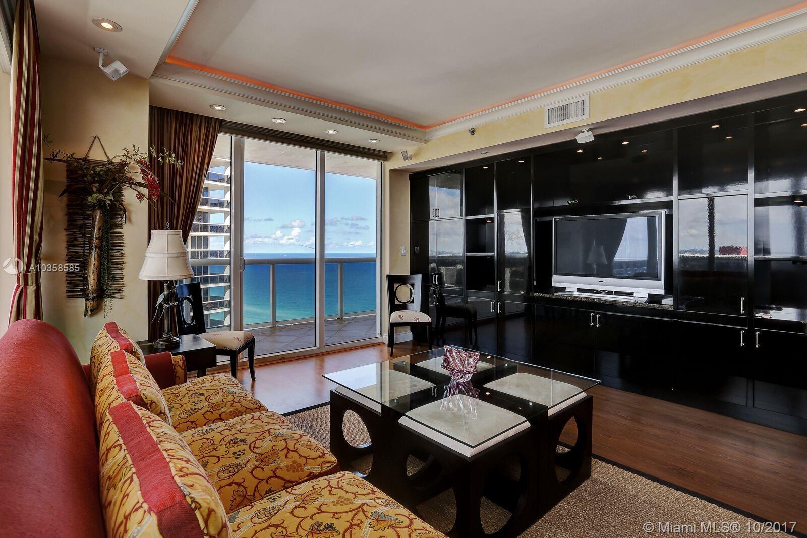 BEACHFRONT LIVING in the MOST DESIRABLE complex on Hallandale Beach. You will fall in love the minute you walk in the door. BREATHTAKING OCEAN VIEWS in the day with EXCITING & ROMANTIC CITY VIEWS AT NIGHT from the WRAP AROUND BALCONY. This high floor unit comes fully furnished with EXCEPTIONAL Built-ins in both bedrooms & living room, creating MASSIVE storage, unit can easily sleep 8 people for FAMILY VACATIONS! Remote control window treatments, state of the art GOURMET APPLIANCES, Glass snack counter and etched glass back splash, large pantry, RESORT STYLE amenities Close to airport, fine dining, Hard Rock, Nova University, Houses of Worship, Fantastic Shopping, ENTERTAINMENT VENUES. Restaurant at the 2 pool areas, Massage room, Movie room, everything you would expect.