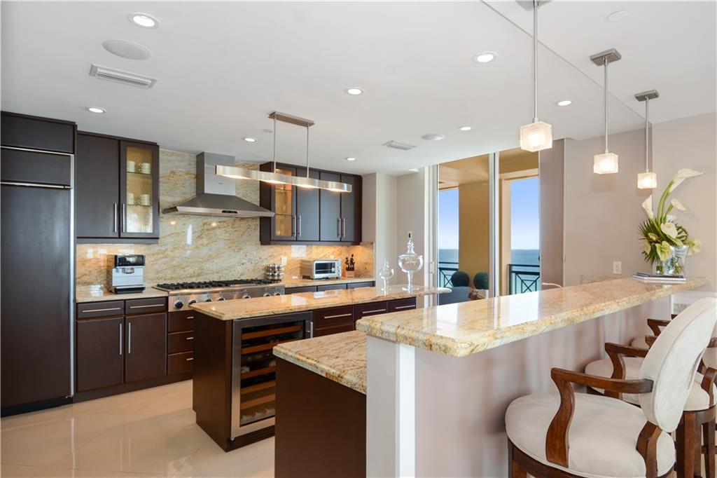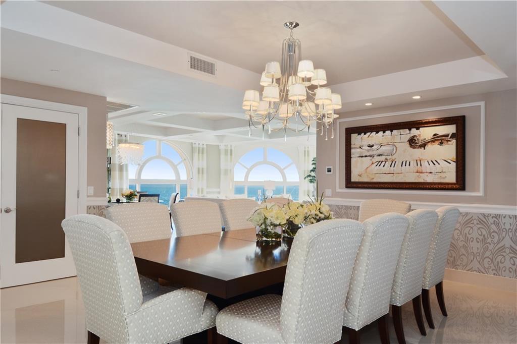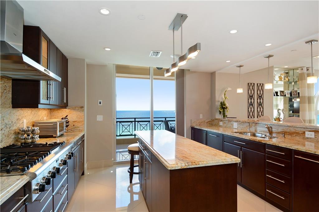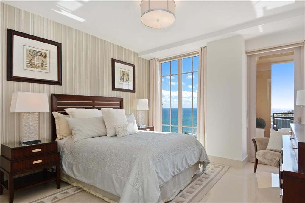 Breathtaking oceanfront oasis in the sky, designed by renowned Interiors by Steven G, being offered turn key. Refined elegance seamlessly blends w/spectacular views from every room, provide an opulent ambiance. Private foyer, gourmet kitchen w/gas appliances. Design features include tray ceilings, detailed millwork & recessed lighting. Surround sound system w/access controls throughout. Fabulous location & 5-star amenities, including valet svc, concierge svc & exercise rm. Boat slip available for purchase