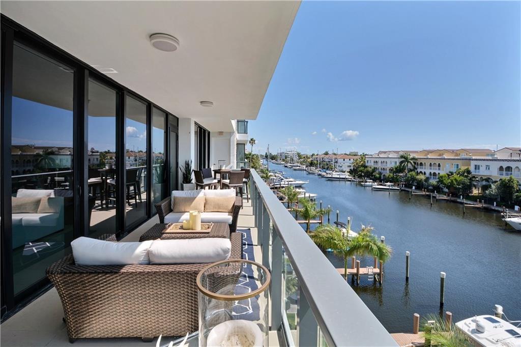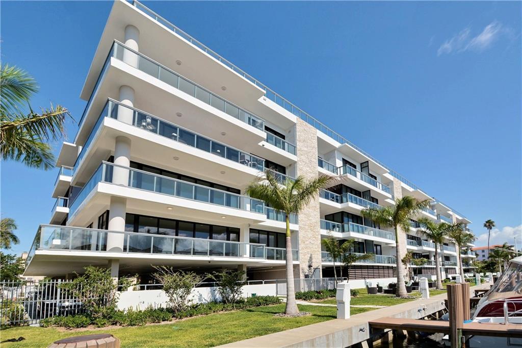 Contemporary open floor plan in highly desirable SE corner of Aquavita. Deep water dockage & fully equipped power station incl. for boat up to 50'. Custom kitchen w/upgraded appliances, gas range, dbl ovens, 2 wine refrigerators, lrg center island & pantry. 10' ceilings, waterside balcony, 3br, 3fba, 1hba & 2 garage parking spaces. Lavish master suite & bath plus 2 walk-in closets. 3rd bedrm boasts sliding glass door. Salt water chlorinated heated pool! Sq ft from developer's floor plan believed accurate.