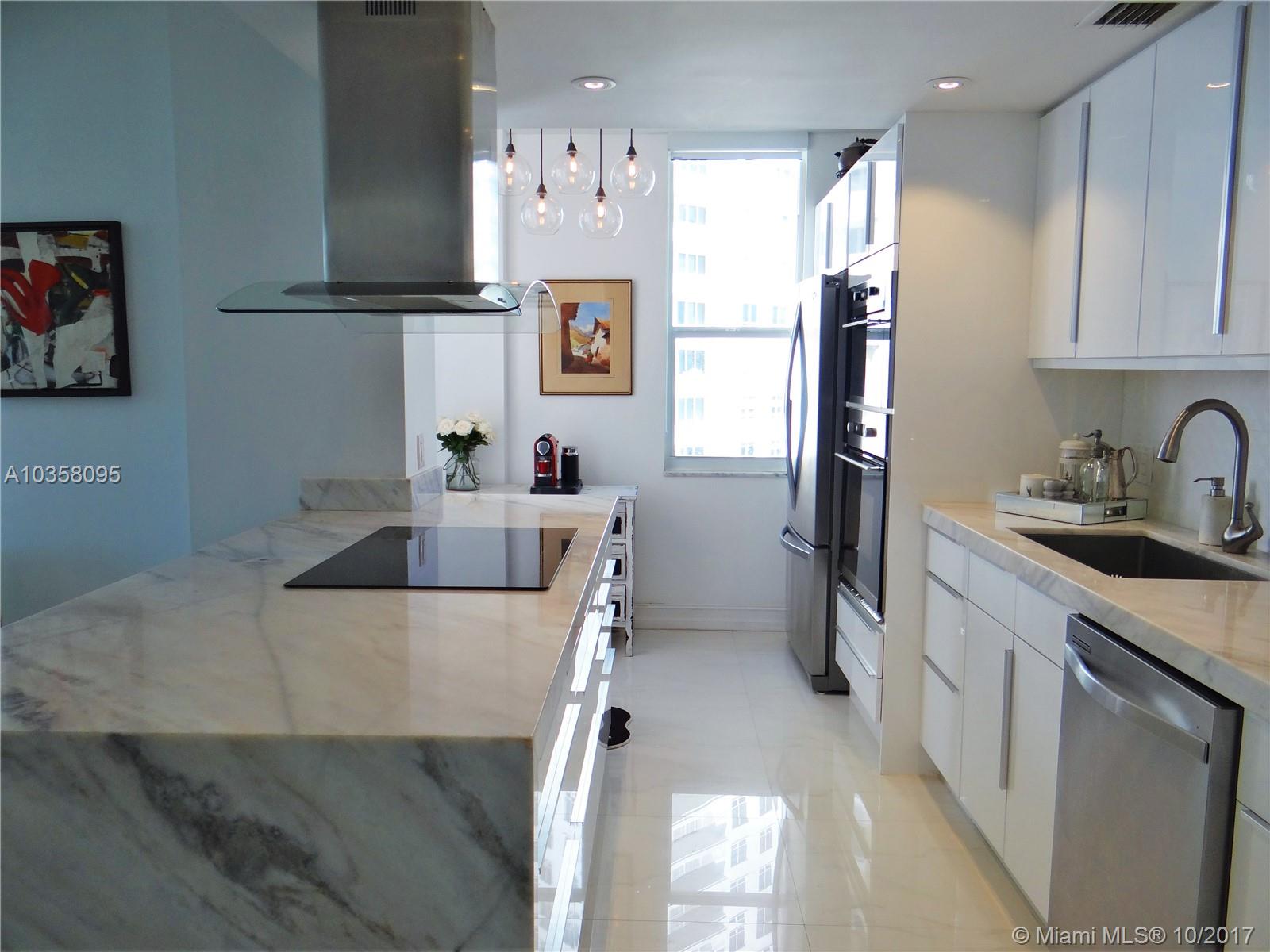 Completely remodeled 2/2.5 corner unit with impact low-e windows, modern kitchen with marble counter top, stainless steel appliances, 24 x 24 white porcelain floors, LED lights, new A/C. Lots of natural light throughout the unit. Split floor plan. Spacious balcony for entertaining. Great views of Brickell Bay and Brickell skyline. 2 parking spaces. Easy to show.