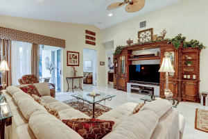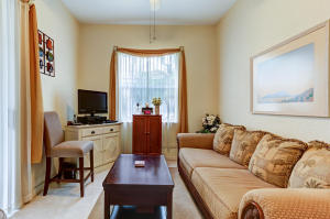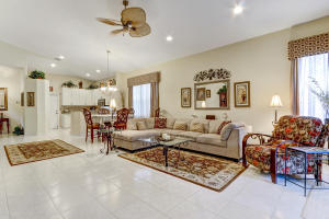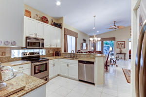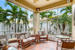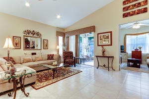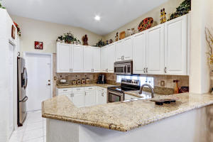 Beautiful 2 bd rm+den/2 bath/2 car, well maintained & up-dated; stainless steel appliances, granite kitchen, pull-out drawers in cabinets, pantry. Tile through-out, accordion shutters. Master has tray ceiling & 2 large walk-in closets, Roman tub, dual sinks. Guest bath has granite counter. Open floor plan, high ceilings. Private screened patio, fully fenced back yard with pavers, outdoor speakers, extended driveway, newer washer & dryer. Extra high hats. Great location- close to everything, yet just far en