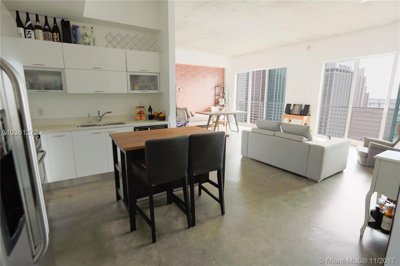 Spacious and bright 2/2 loft with 10 feet high ceilings facing SE with magnificient Bay and City views. Unit comes with washer, dryer, dishwasher, Sealed Concrete Floors, High Ceilings, Floor to Ceiling Impact Windows, Private Terrace, 2 Full Baths, European Cabinetry, Stainless Steel Appliances, Granite Counter tops. Building offers full amenities, a roof top pool and expensive gym, with Sauna and Jacuzzi, community room with wi-fi. Metromover at your doorstep. Walking distance to AA Arena, Bayside, Miami-Dade Community. Easy access to I95 and major expressways.
