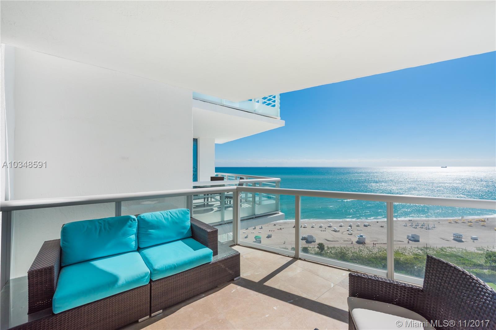 Experience 6 star resort luxury on this high floor unit with two spacious terraces allowing amazing views both day and night. Every bedroom has access to terraces. Other features include: private elevator entrance, gourmet European kitchen, granite counter tops, beautiful marble floors throughout, lavish master suite & more. Residents can relax at the clubhouse, modern gym, sauna, massage room, movie theater and private wine cellar. Explore mid beach's finest beach service, shopping, and fine restaurants.