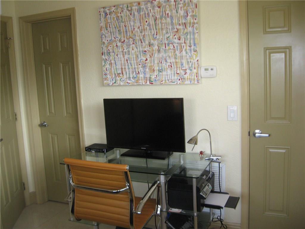 End/corner unit with IMPACT WIDOWS on 3 sides, open granite/stainless kitchen, bamboo and marble flooring, WASHER/DRYER IN UNIT, crown moulding, custom blinds, last building on a quiet dead end street overlooking Holiday Park tennis courts. Can rent immediately with tenant currently in place at $1400/mo. LOCATION, LOCATION!!!