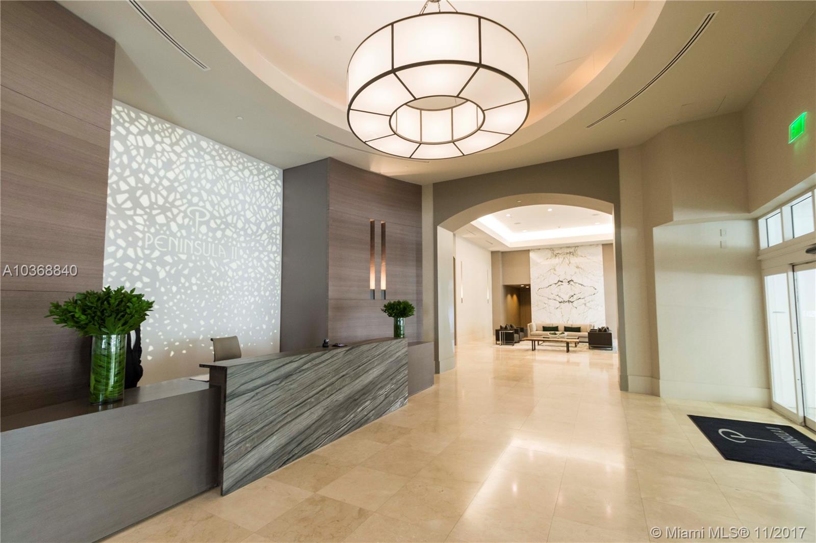 Live a resort Life! Very spacious corner unit with breathtaking bay and ocean views. 3beds + large Media room (DEN) / 3.5 bath. Botticino marble floors.Brand new Top of the line kitchen and appliances. Brand new AC units with NEST AC and smoke detectors. Glass shower in all the bathrooms. LED lightning. Electronic window treatment and blackouts. No expenses was spared!!4 PARKING SPACES assigned included on the sale!Peninsula 2 has all resort amenities such as Bay front pool, Jacuzzi, BBQ, Play Room, Games Room, Media Room, Valet service, 24h Concierge service, Coffee Shop, Spa, Quiet Pool, Jacuzzi, Sauna, Steam Room, Fully equipped Gym with personal trainer Studio and Spinning Studio and 3 Tennis Courts. HOA fee includes Cable, High speed internet and VOIP phone. SEE VIRTUAL TOUR!