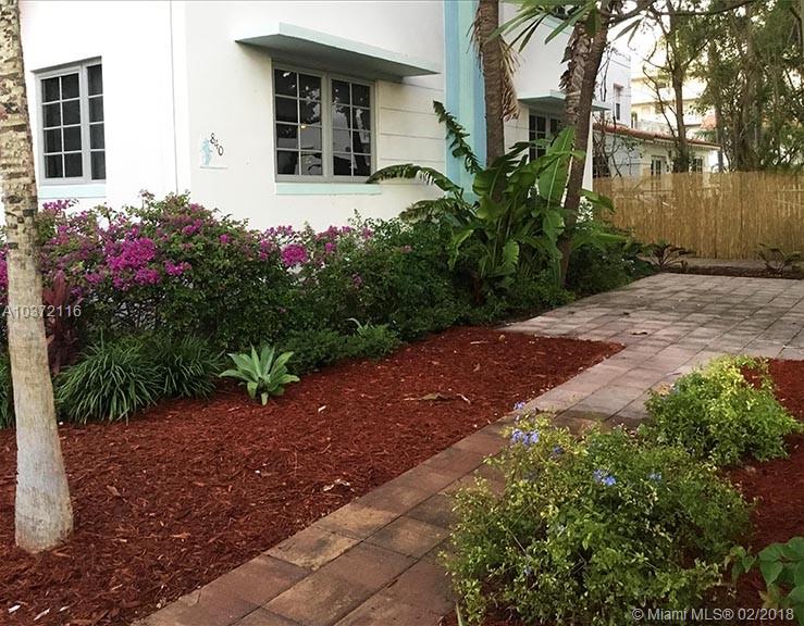 South Beach Hideaway!! Sunny, corner, 900 sq ft in quiet section of Flamingo Park Historic District. Nine-foot ceilings, refinished pine floors, french doors and Deco details. Granite countertops in kitchen. Sold with engineer's plans for a potential full 2nd Bath (see attachment) and in-unit washer/dryer. Central AC and heating. Pets under 30 lbs. Impact windows and doors. 2 closets, one extra large walk-in. Unusually large yard with multiple seating areas and mature Mango, Frangipani, and Mamey trees. Close to beach, Whole Foods, Publix, and Flamingo Park recreational facilities. Within the South Point Elementary school district. Rewired electric, gas availability, new roof 2011, passed 40-year inspection 2012, washer/dryer on premises.