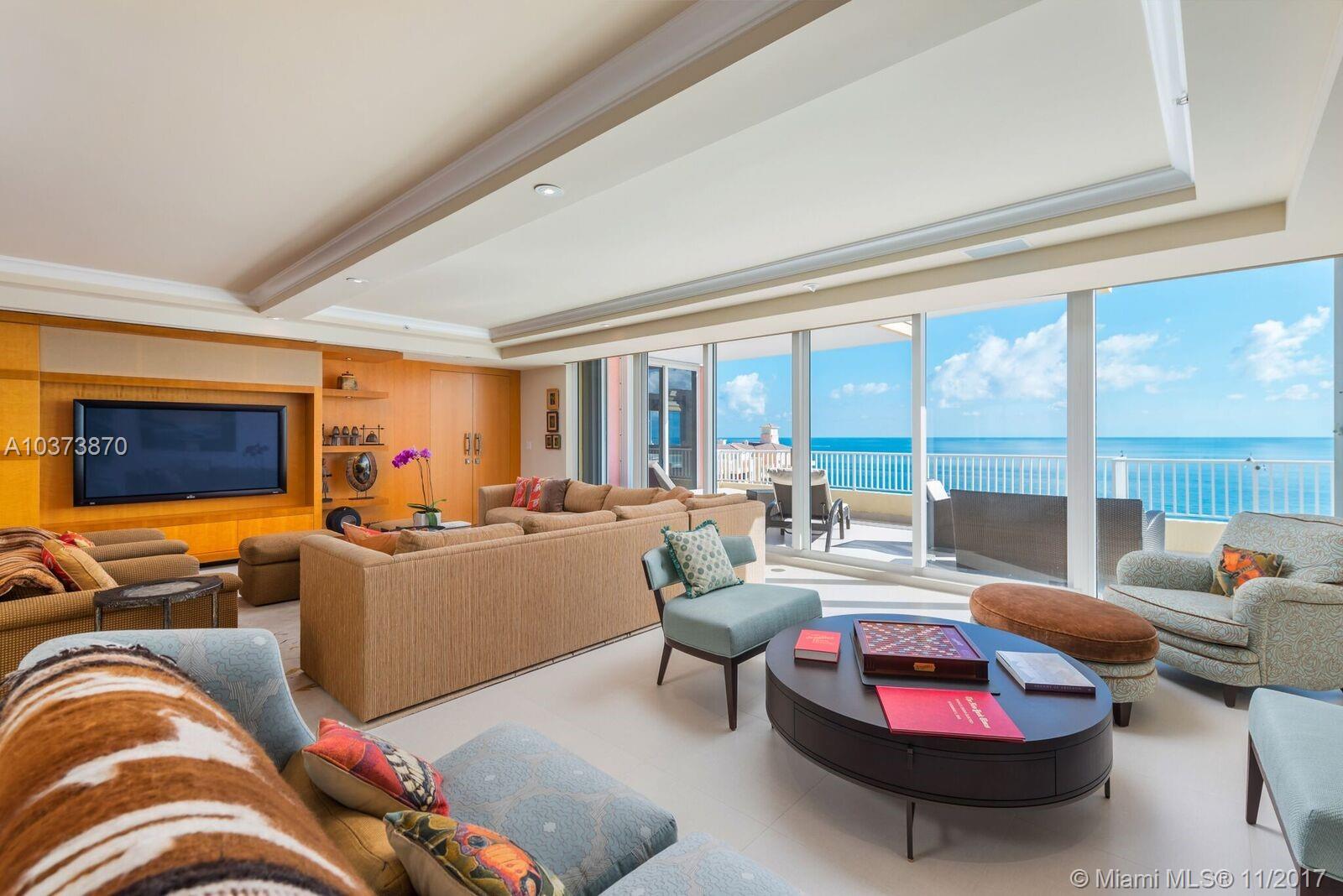 Enjoy the ultimate level of luxury living from this magnificent and stunning penthouse in the prestigious Ocean Club Condominium.This paradise in the sky was completely redone with the highest quality craftsmanship and design.Spoil yourself with breathtaking views of the ocean, bay, and Miami skyline from this unique residence. One of a kind, sophisticated and flow-thru offering 5,100 sq ft under a/c with 4 bedrooms,3.5 bathrooms,open living room,dining room,family room,office,sleek kitchen equipped with high end appliances,custom built-in units, lighting system and amazing large terraces where you can enjoy the gorgeous sunrises and sunsets.Fall in love with the resort life style of the Ocean Club community,beach,pools,tennis,restaurant,gym,spa,children’s playground plus security.
