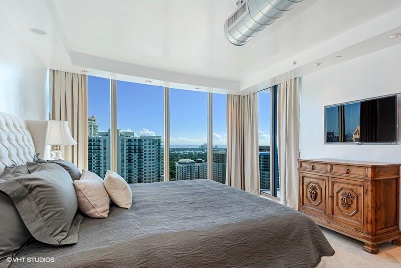 Serious seller is relocating and has priced this 30th floor gem for a quick sale! Unique, modified Columbus model with cool, exposed stainless A/C duct work and solid glass wall to huge master bedroom gives a real modern retro feel. Polished marble flooring throughout the unit, 3rd bonus room is ideal for home office/den, one generous sized balcony facing East with awesome views of downtown, Las Olas and the ocean, 2nd balcony facing West offering great views of the city lights and new river.