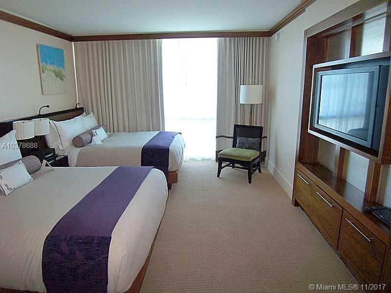Lowest priced condo-hotel unit on the market at the prestigious Carillon Spa and Resort. This SW corner features the largest 1 bedroom floor plan available and is offered turn-key. Configured with 2 queen beds in the bedroom, a spacious bathroom and a kitchenette with under-counter refrigerator, dishwasher, microwave and 2 burner cooktop. SW corner with city/sunset view. 70,000 sf fitness/spa, 4 pools, salon, concierge, gourmet restaurant, pool side cafe, bar, 24hr security, valet, boutique, wellness staff, jog/bike beach path along beach. Owner's closet. Unit is not currently enrolled in the hotel rental program but is eligible to be entered or you can rent out nightly on your own. Door #402 / Deed #415. See photos.