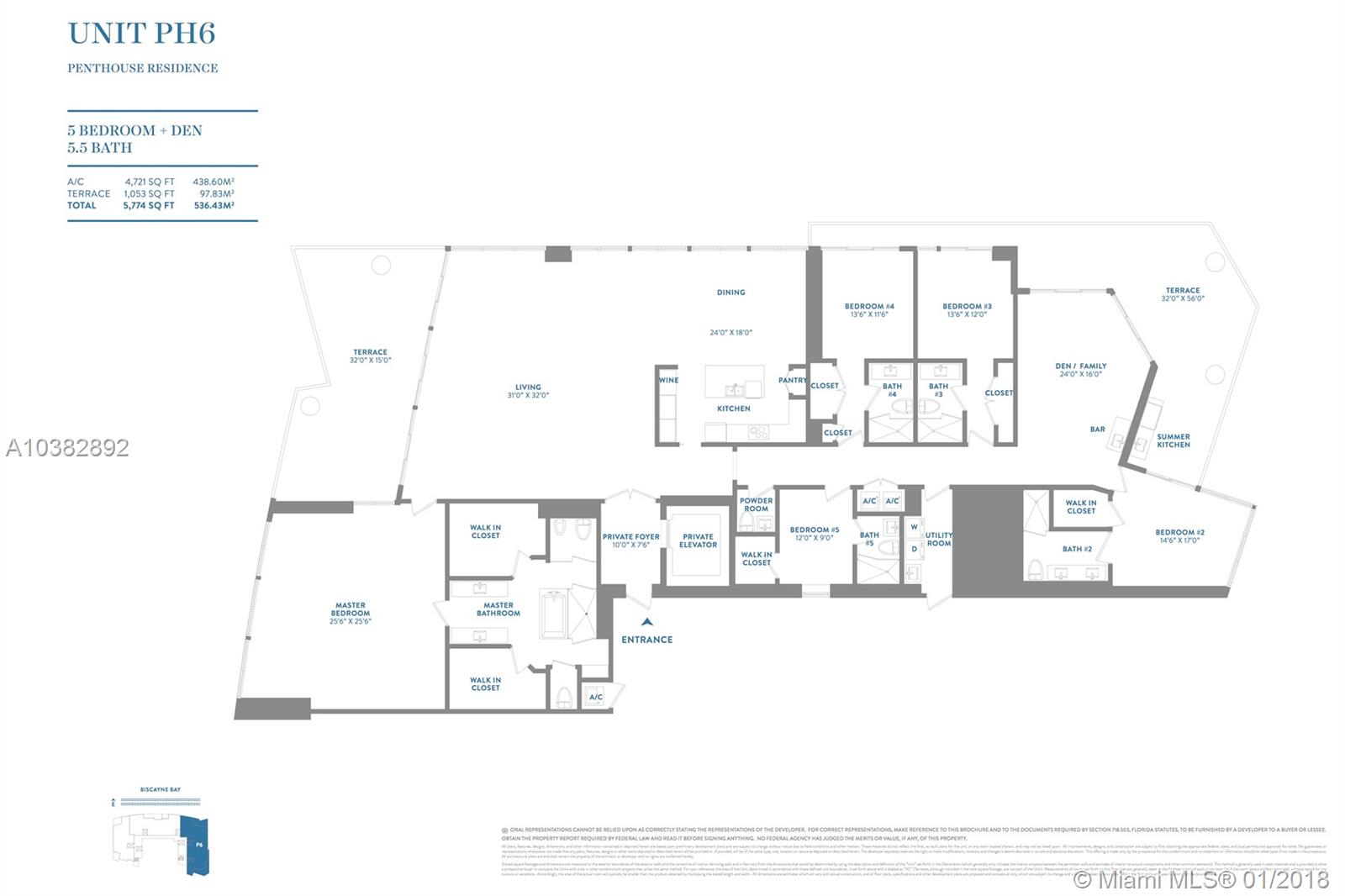 Enjoy glorious sunrises over Biscayne Bay and mesmerizing sunsets over Miami’s slick city skyline in this 5774 sqft flow through corner residence PH6. This 5br/5.5 bath + den is the newest addition to Miami’s elite cosmopolitan neighborhood. This breathtaking tower of glass intertwining city living with beach club lifestyle has become the city’s most desired address. With interiors by renown designer Thom Felicia, the buildings unique amenities are like no other. Concierge services, dog park, 2 tennis courts, basketball court, gym/spa, business center, 2 great rooms, and beach club with lounge, pool, cabana, private pier and more! **4 PARKING SPACES + VALET**