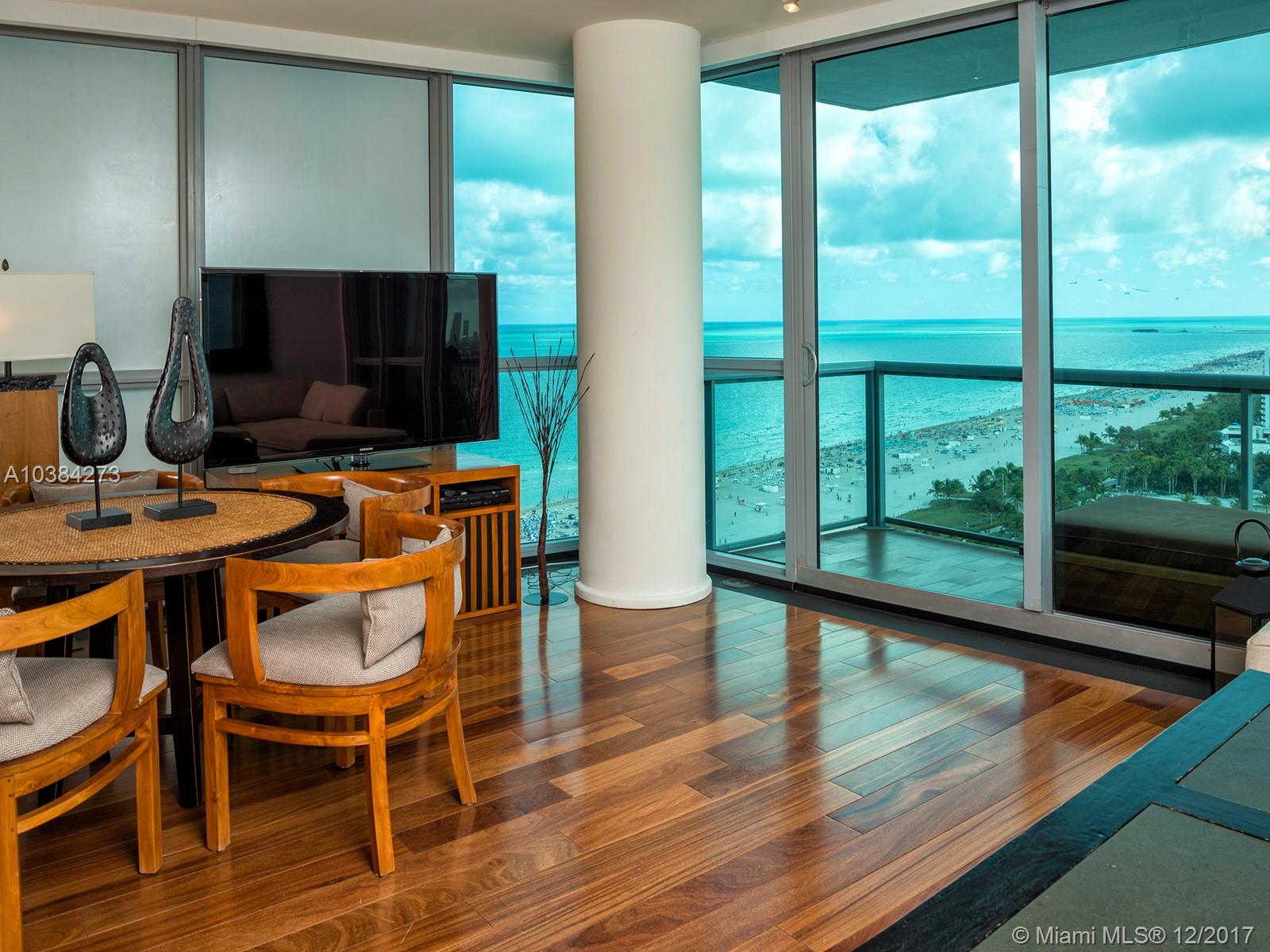 This apartment at the Setai sits on the highly desired southeast corner of the building featuring panoramic ocean and city views from a large terrace. The residence includes custom cabinetry for extra storage space, modern accent lighting, custom electronic blackout shades, stainless steel Miele and Sub Zero appliances and 1,141 s.f. of open living space. Includes access to five-star amenities.