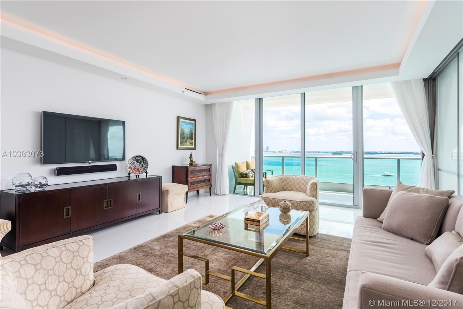 An immaculately appointed, east-facing 1 Bedroom condo at the luxurious Jade at Brickell Bay w/ 1,135 interior sq ft; a large, expansive terrace suitable for outdoor dining & lounging; white marble flooring throughout; custom lighting; motorized shades; custom closets; and breathtaking, panoramic views of the bay, ocean, and sunrise. Kitchen equipped w/ cherry wood cabinets, granite countertops, Sub-Zero refrigerator, wine cooler, and cappuccino maker. Lavish Master Bath w/ Jacuzzi tub, separate glass-enclosed shower, bidet, and dual vanity with marble countertops. Amenities include: 24-hr, full-service concierge; a state-of-the-art fitnes & health spa w/ men's & women's sauna & steam room; an infinity-edged waterfront pool; complimentary valet parking for guests; rooftop clubroom; & more.