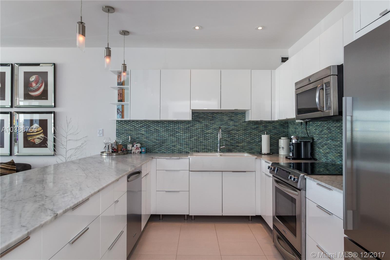 Renovated spacious loft-like unit with spectacular panoramic marina and bay views. Imported Italian porcelain flooring. Open kitchen with carrara marble counter top, KitchenAid and Fisher Paykel appliances. Duravit bath fixtures. Designer hardware and lighting. Large closets. Impact hurricane windows and large open balcony. Walking distance to Lincoln Road and Sunset Harbour trendy area. Easy to show!