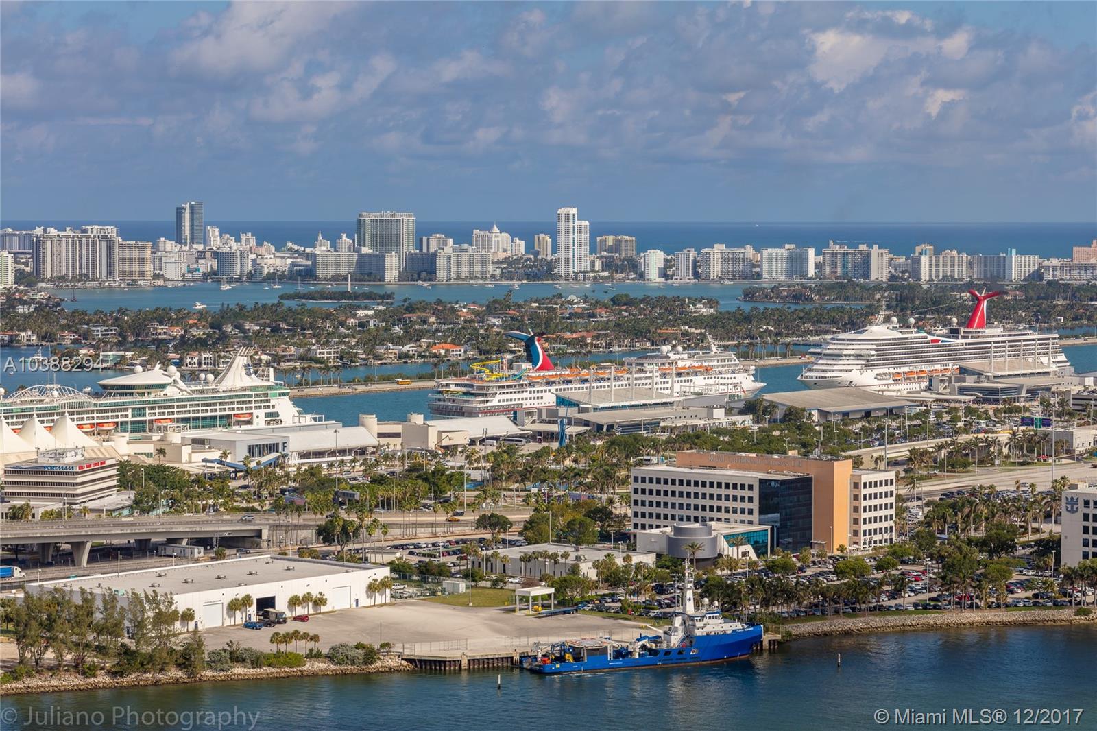 Immaculately remodeled residence with direct east views fronting Biscayne Bay and extending to the Atlantic. The uniquely positioned open balcony of unit 3806 gives a front roll seat to the Miami Cruise Port, 4th of July Fireworks, and New Years countdown. Great floor-plan includes 2 bedrooms plus an enclosed Den and 2 completely re-tiled bathrooms. Porcelain floors extend throughout the apartment including the balcony. This unit offers a large kitchen with ample cabinet space and generous closet space in all bedrooms. 50 Biscayne is a well managed building with a strong financial backbone and superb amenities, including one the best pool decks in the area and large fitness center.