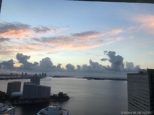 Beautiful 2 bedrooms, 2 bathrooms furnished unit with amazing breath taking views of Biscayne Bay. This property features great living area, open kitchen with imported Italian cabinetry, granite counter tops, stainless steel appliances and washer and dryer inside the unit. Centrally located close to major roads, highways and entertainment areas this building features great amenities such as: a fitness center, pool, club room, theater and business center as well as Wi-Fi in common areas. Water, Basic Cable and Internet are included in the maintenance.