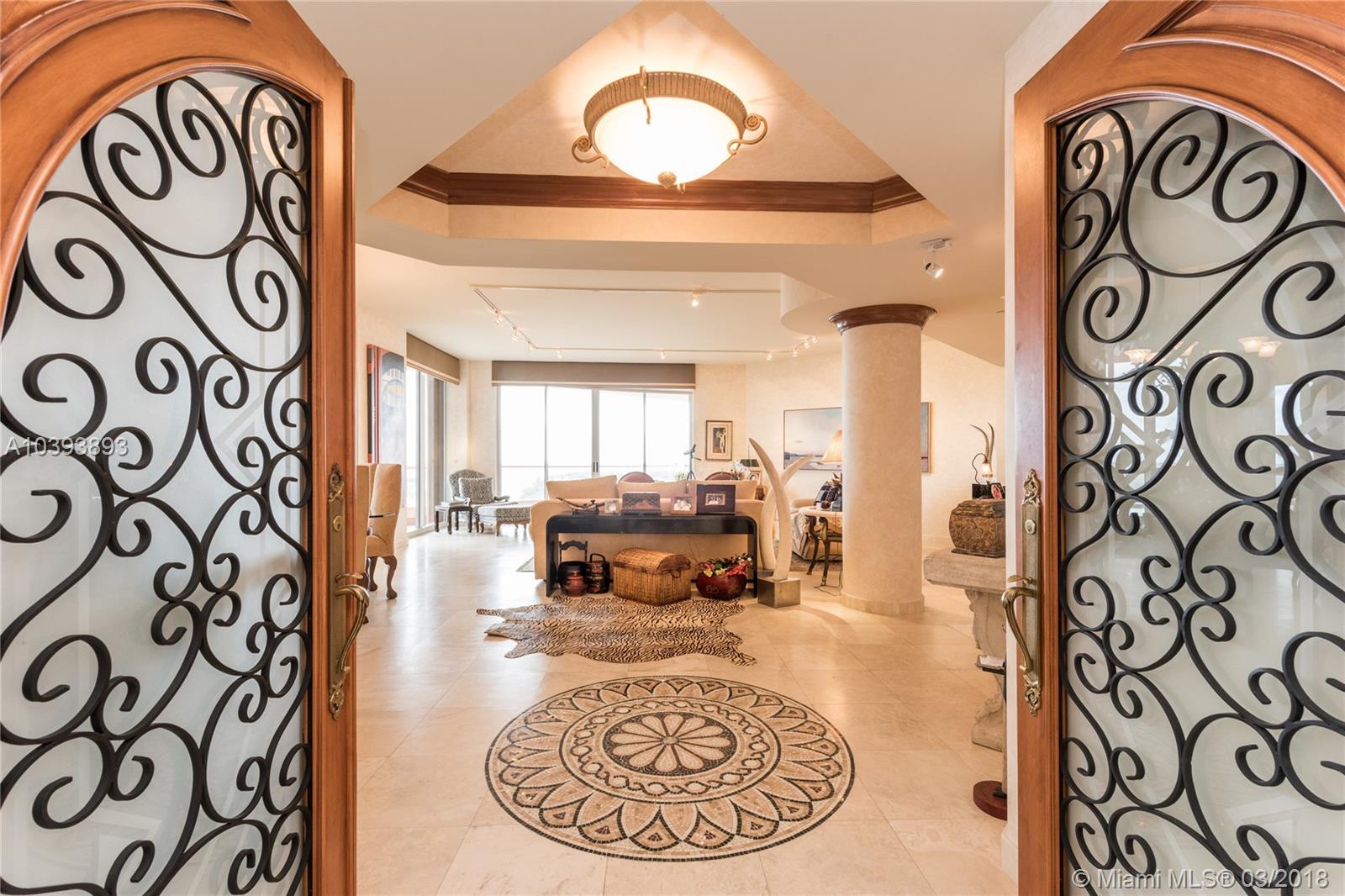 Elegant condo in prestigious Gables Club where elegance, style & impeccable services grace this property. Personal elevator opens to exclusive luxurious living at its best with panoramic views of Gables Waterway, Miami Skyline and Biscayne Bay. Sophisticated 3 bedroom, 3.5 bath open & spacious condo with 2,950 square feet. Ample wraparound terraces allow for outdoor dining and relaxation. Enjoy gorgeous landscaping, serene privacy & some of the most luxurious amenities. Refined living.