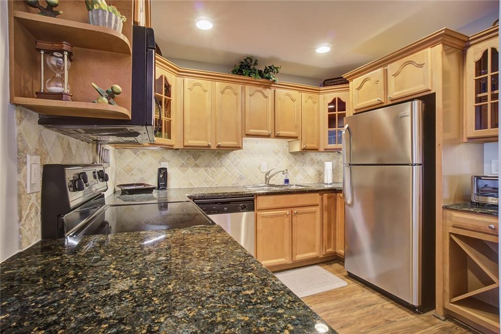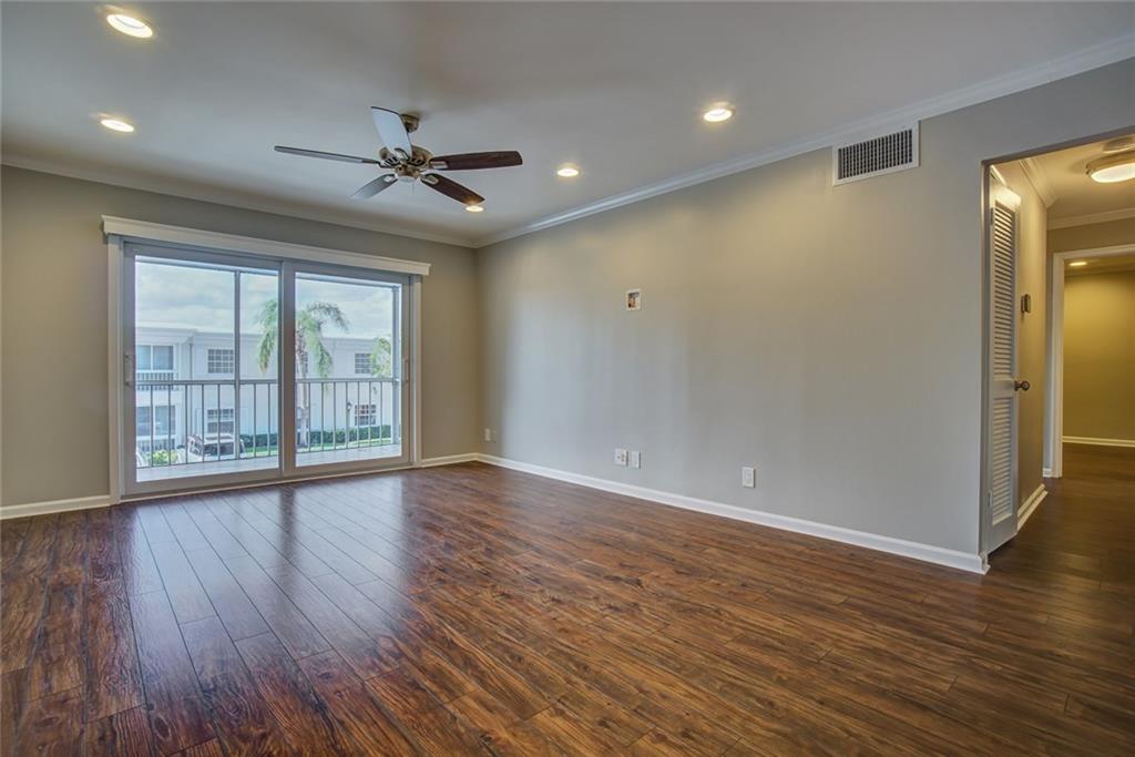 This condo has been meticulously remodeled with nothing spared. The open kitchen has granite counters, stainless appliances. The new wood floors throughout give a sleek sophisticated appearance. New A/C, water heater, popcorn removal, new washer/dryer, impact glass & doors, 2nd bedroom closure, plantation shutters etc. Just bring your personal items!