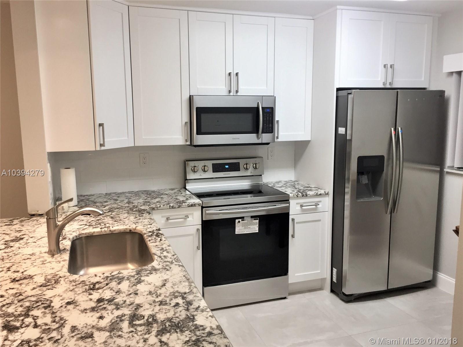 Completely upgraded corner unit on golf course in Jacaranda Villas II. The remodeling work has been done for you! Light and modern unit. New 24x24 porcelain tile, baseboards, paint & fixtures. New kitchen layout opens to living area, granite tops, new Samsung appliances, soft close wood cabinets and LED lighting. Master bath has 2 sinks, long granite top, new shower/tub, tile work and toilet. Walk-in master closet with 2 bi-fold doors for entry/exit. Big master bedroom with desk area/vanity. Updated half bath. Impact windows in kitchen, bath and bedroom, new vertical blinds and more. Great location, close to shopping, food, worship, airport. Don't wait on this one. Easy to show.